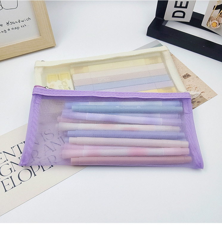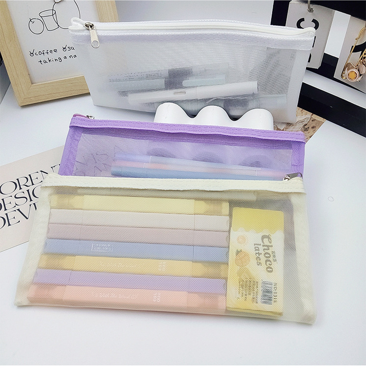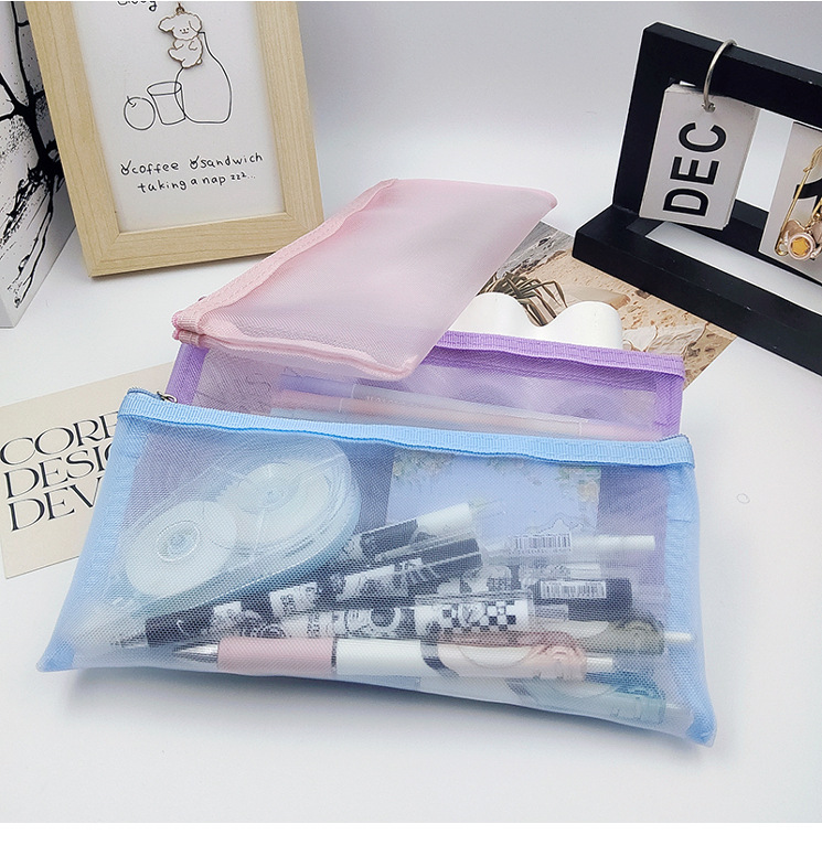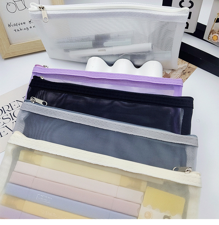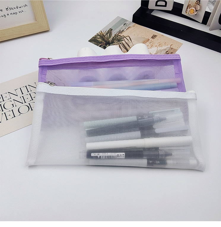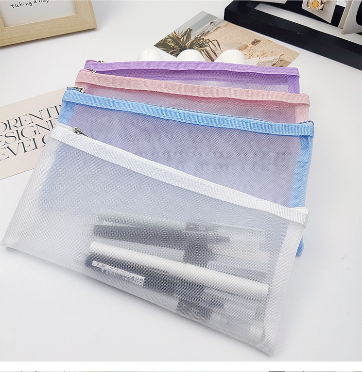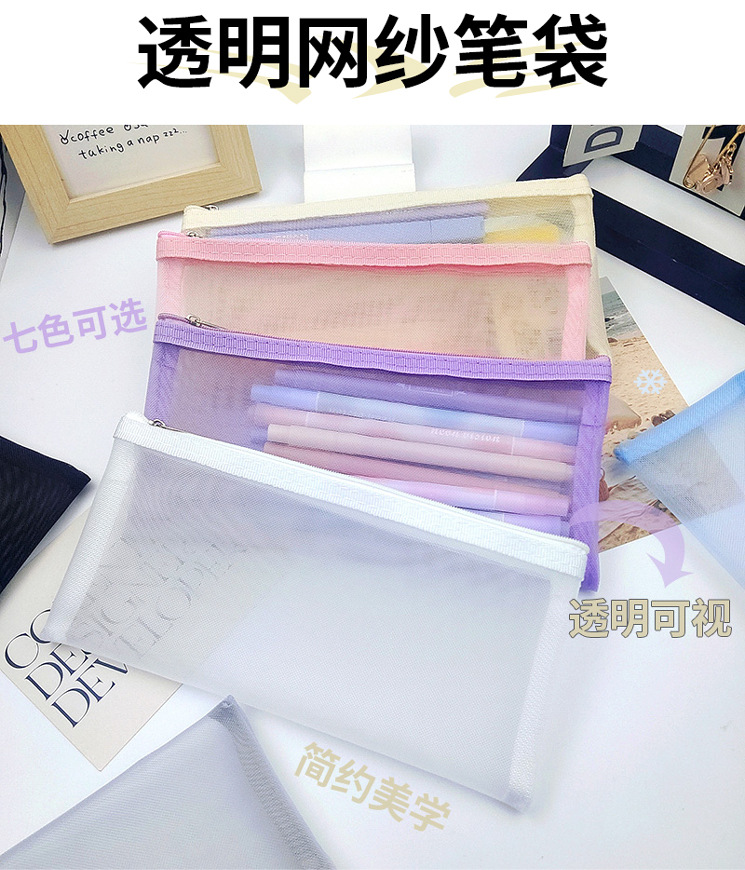 간단한 메쉬 투명 연필 가방 도매 학생 휴대용 시험 특수 문구 가방 간단한 연필 가방 인쇄 가능스토어 가기