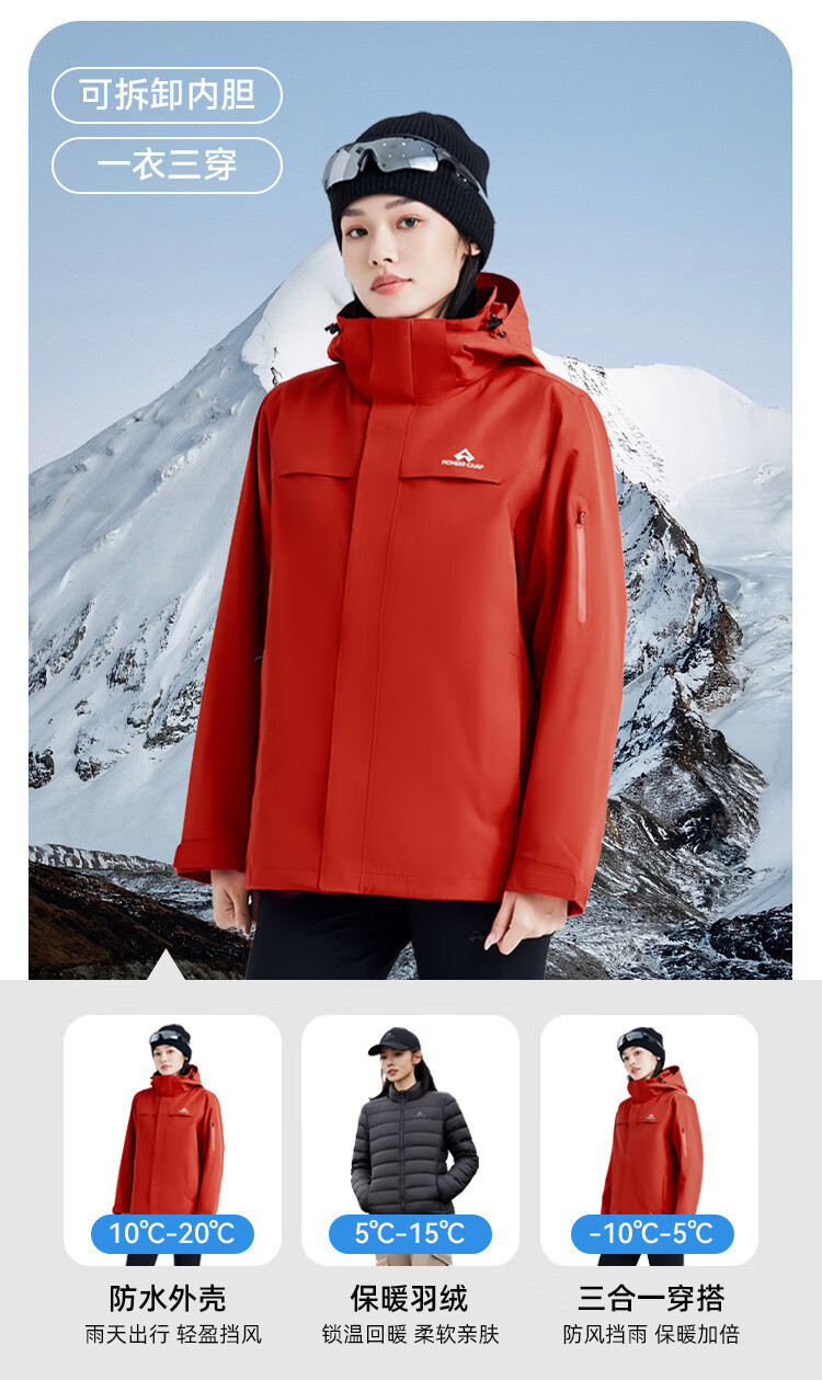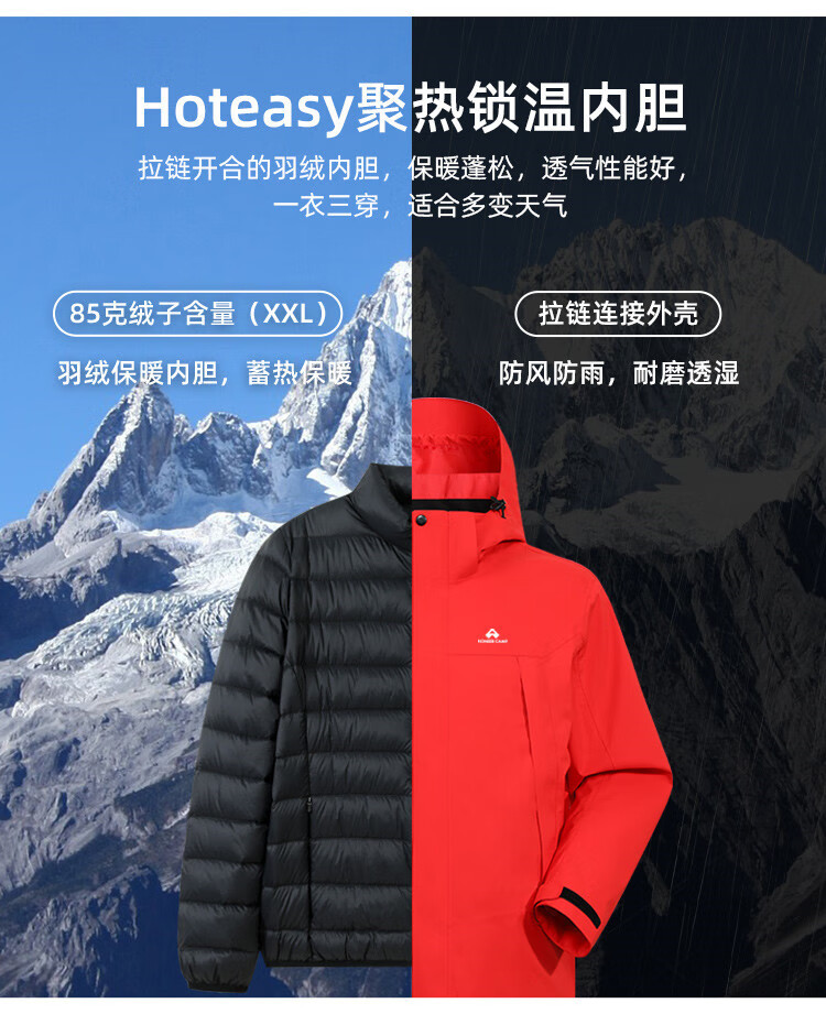 로드 댄서 야외 3 대 1 충전 옷 여성 다운 라이너 가을 및 겨울 따뜻한 방비 방풍 재킷 등산 세트스토어 가기