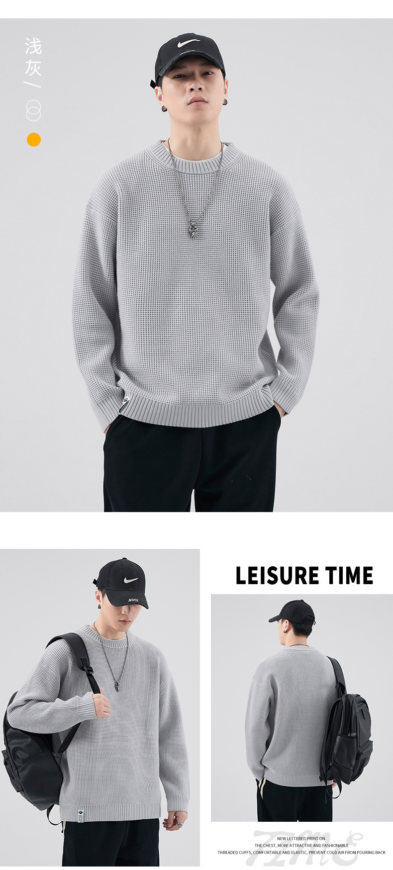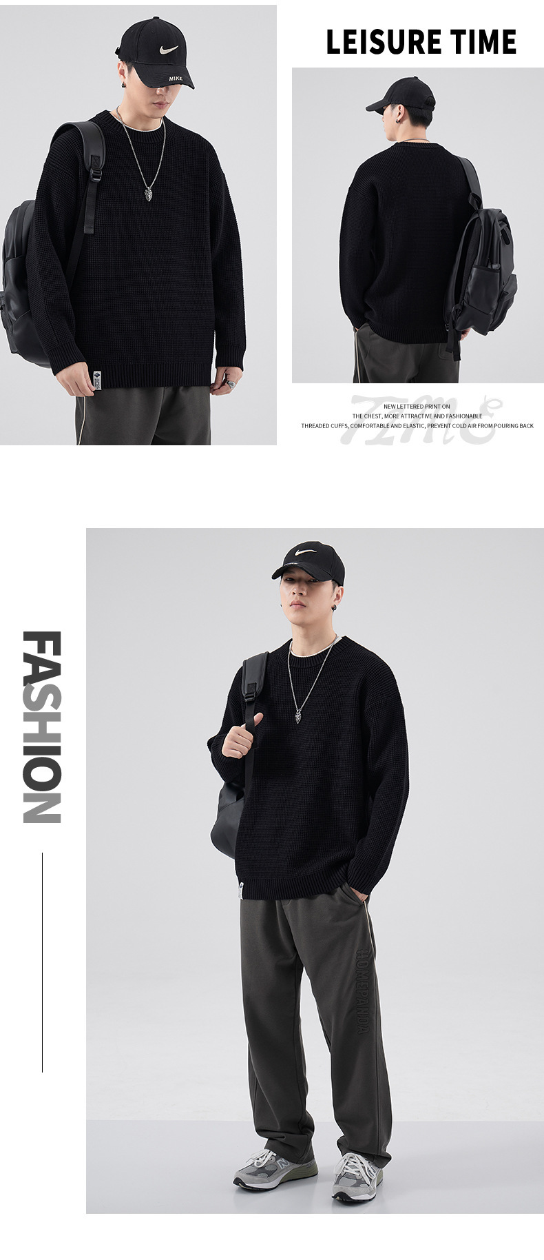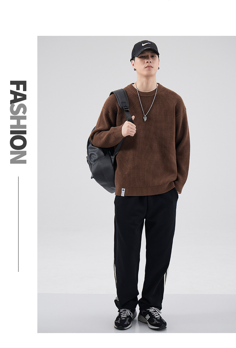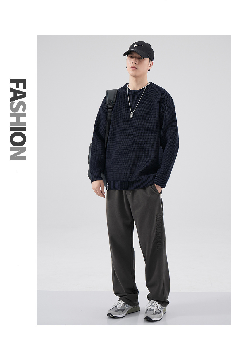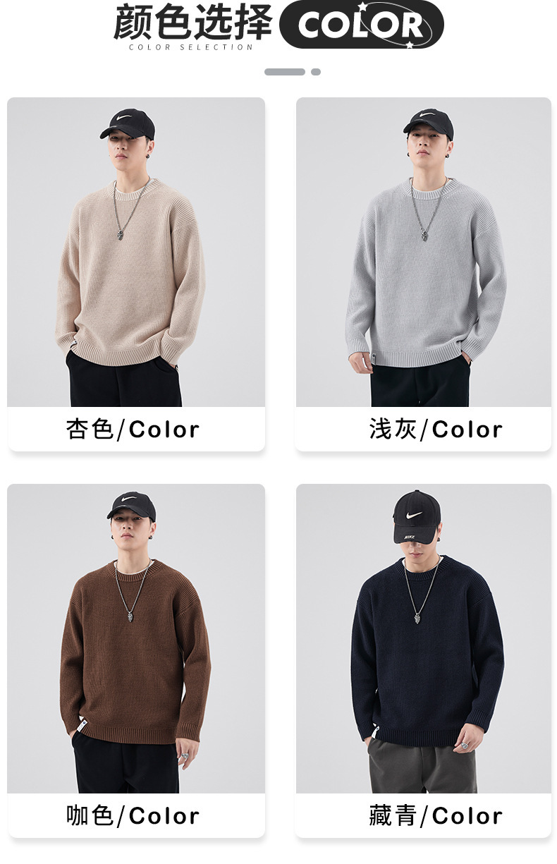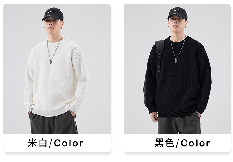 香港潮牌秋冬新款纯色圆领毛衣男宽松休闲慵懒套头加厚针织衫上衣