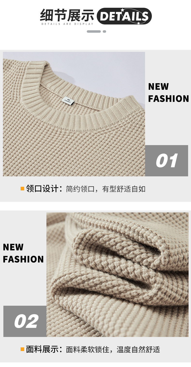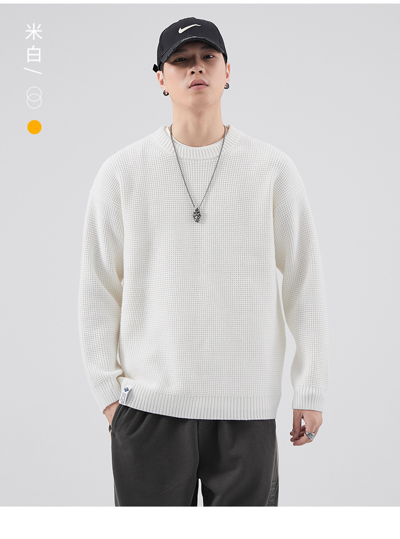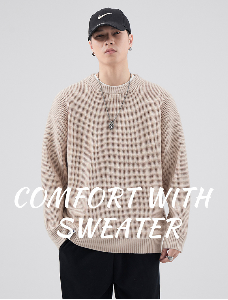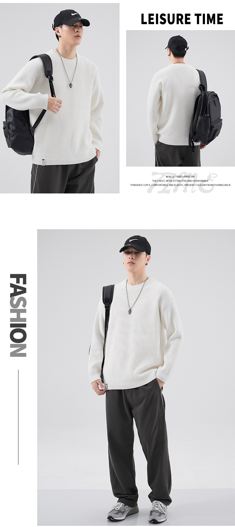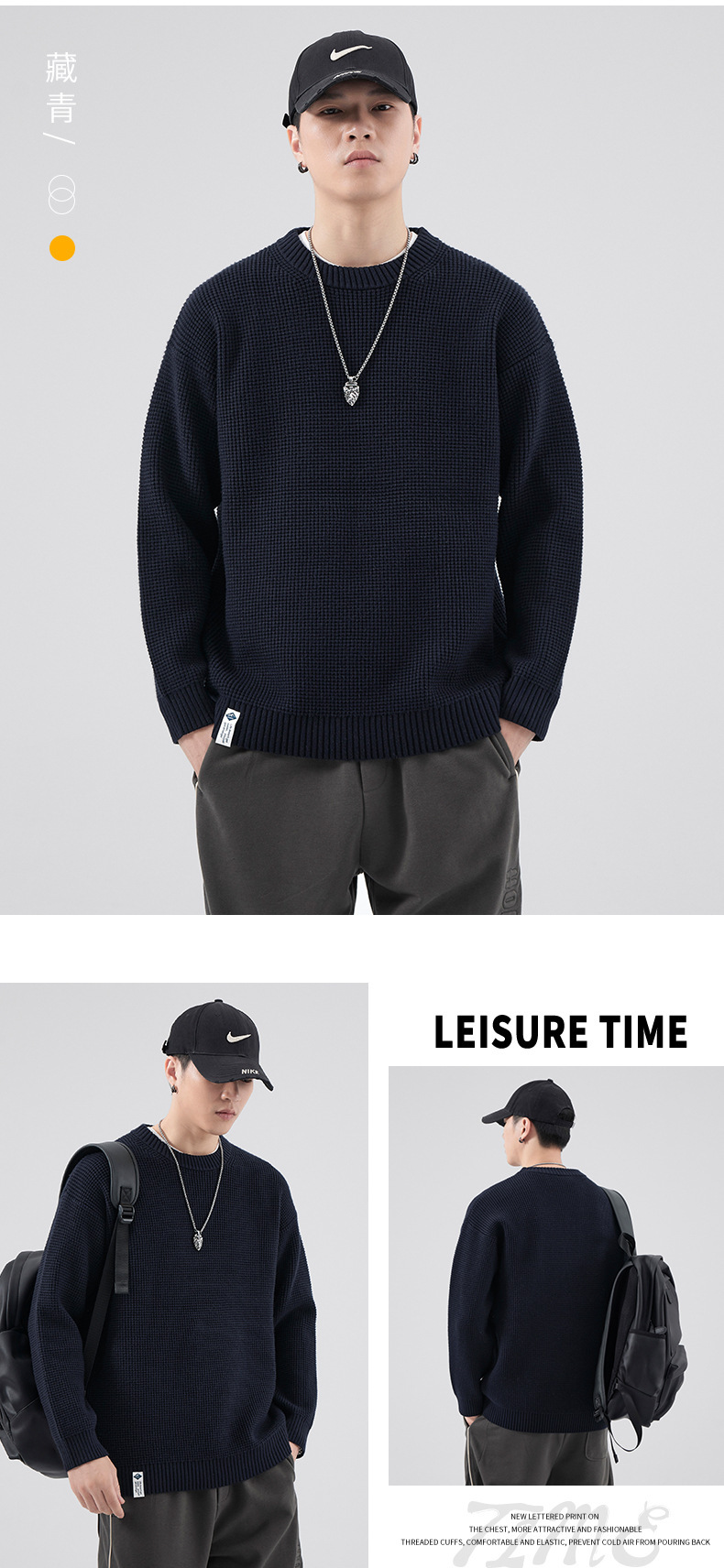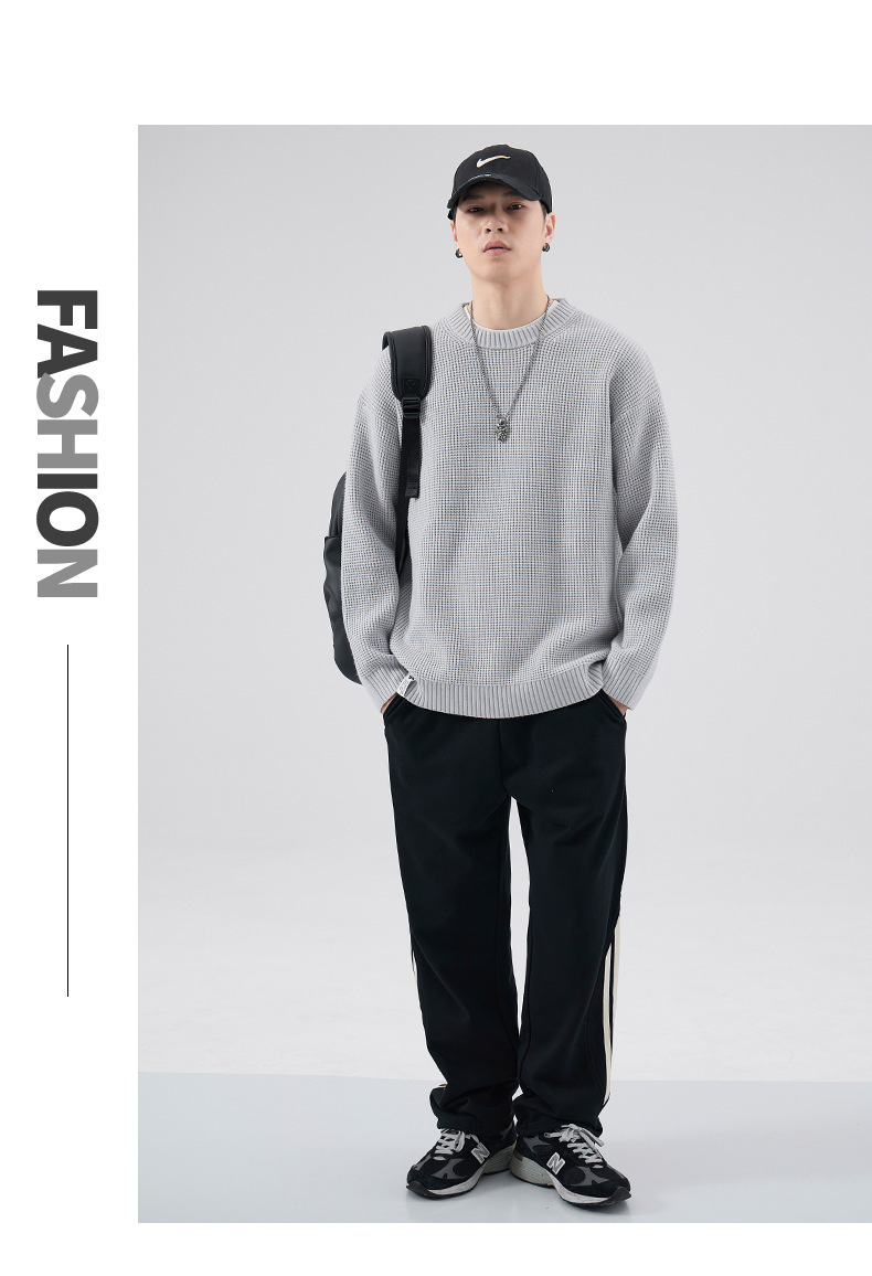 香港潮牌秋冬新款纯色圆领毛衣男宽松休闲慵懒套头加厚针织衫上衣