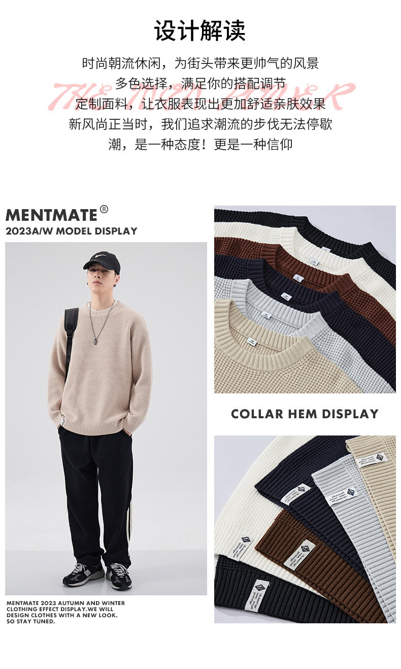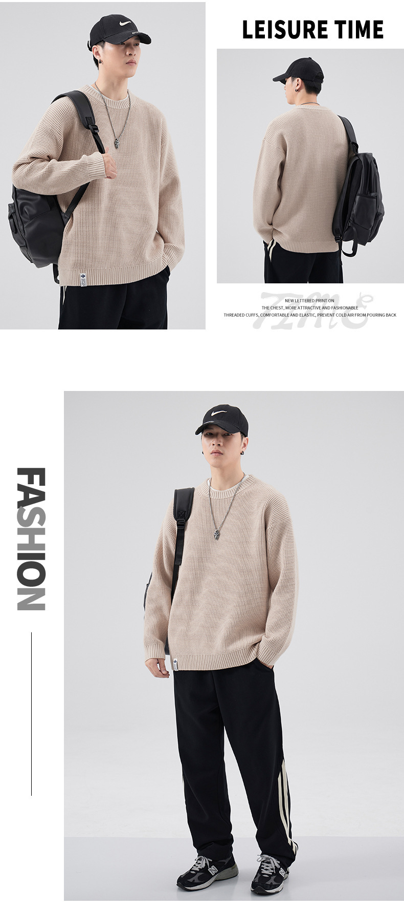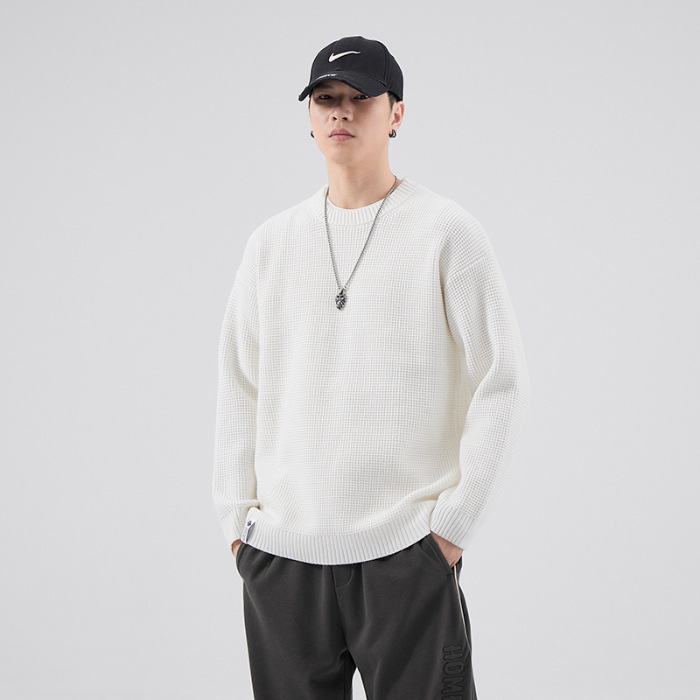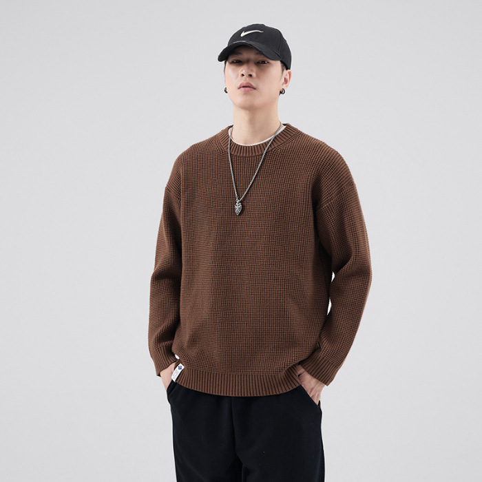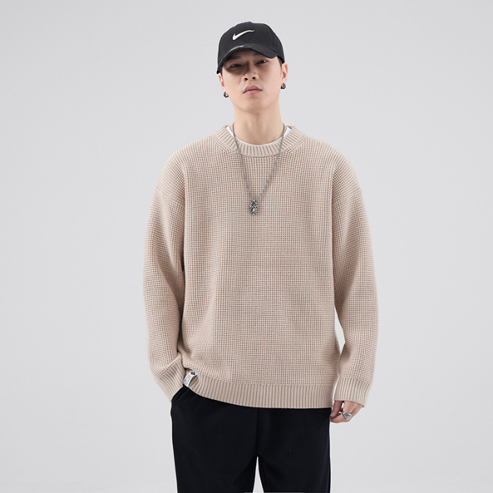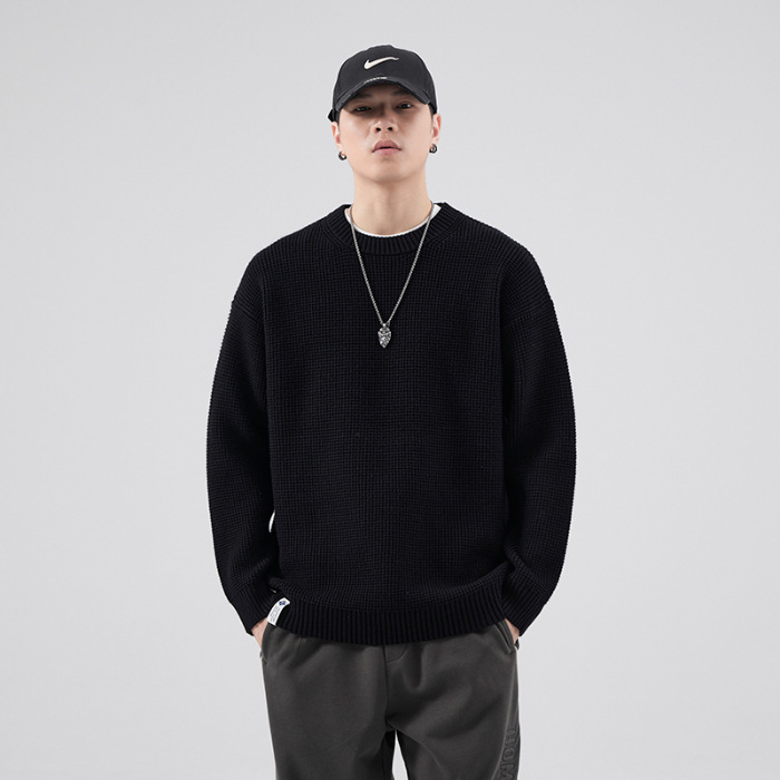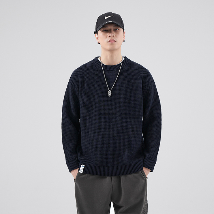 트렌디 한 브랜드 가을과 겨울 새로운 단색 라운드 넥 스웨터 남성용 느슨한 캐주얼 게으른 스타일 풀오버 내부 스웨터 탑