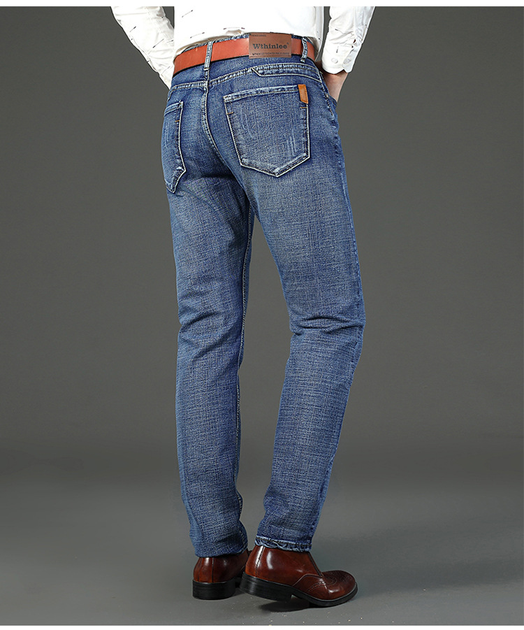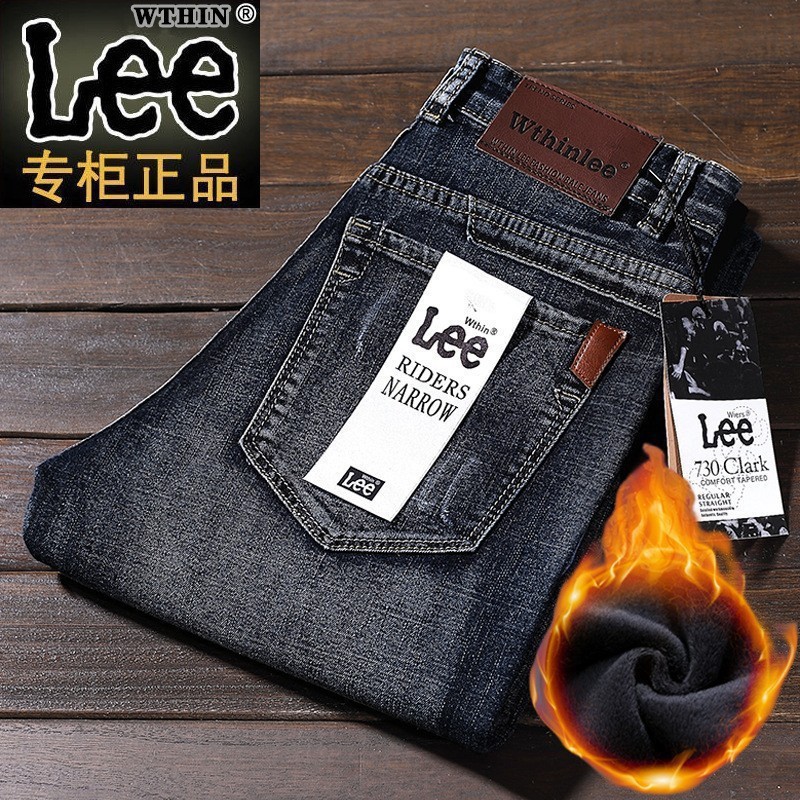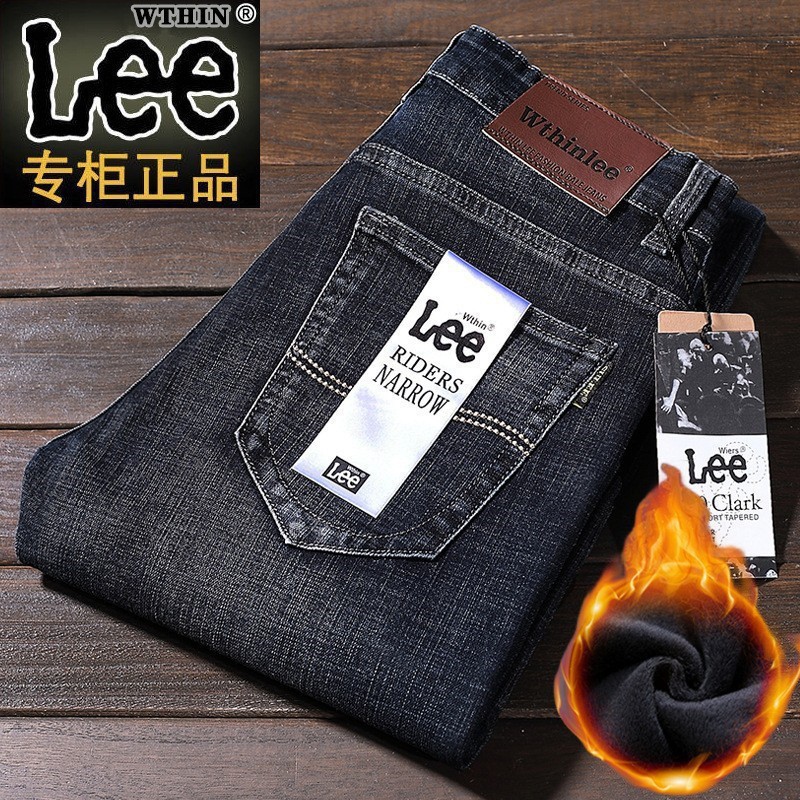 Wthin lee Jeans 남성용 가을 및 겨울 양털 포장 바지 남성 비즈니스 스트레이트 루즈 탄성 크로스 보더 남성 바지스토어 가기