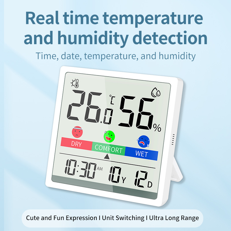 대외 무역 국경 간 컬러 스크린 자기 온도계 실내 가정용 디지털 디스플레이 시간 온도 및 습도 측정기 소스 제조업체 사용자 정의
