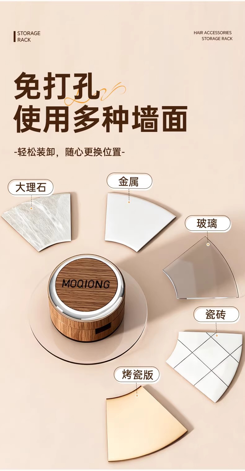 욕실 흡착식 수납 선반 머리끈 헤어 액세서리 헤어핀 머리띠 헤어끈 걸이 가정용 욕실 액세서리 수납 도구