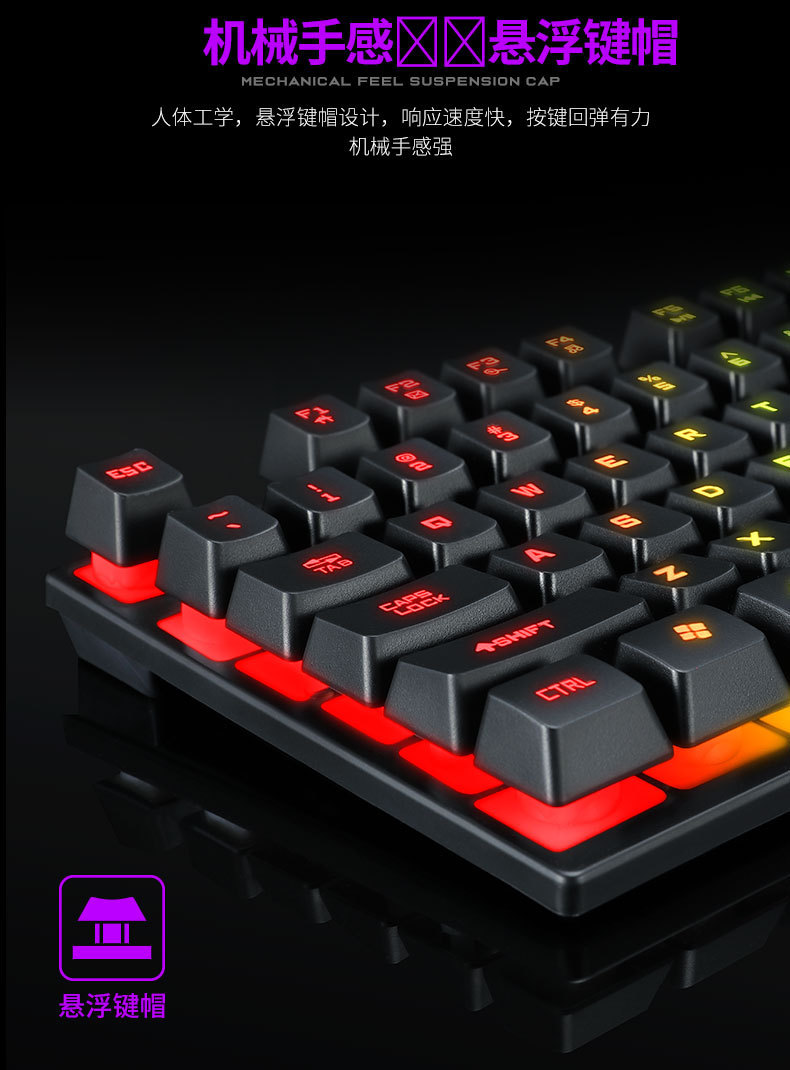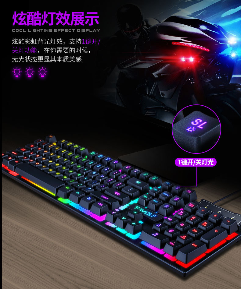 국경 도매 Thunderwolf T20 빛나는 RGB 게임 키보드 스페인어 서스펜션 러시아 USB 유선 키보드
