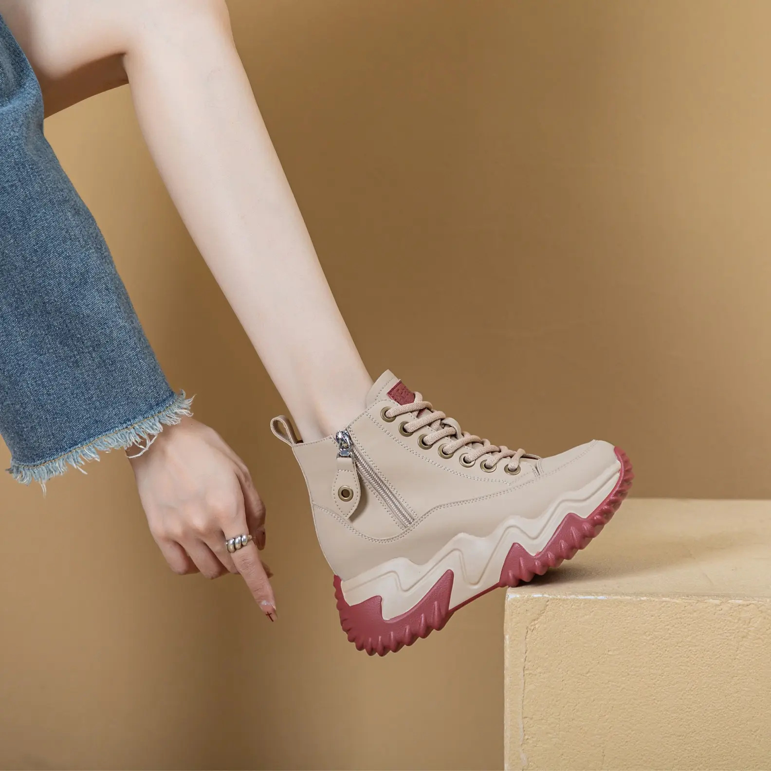 2025 가을 신상 여성용 두꺼운 밑창 운동화 7cm 키높이 캐주얼 여성 트렌디 숏부츠 레이스업 하이탑 여성화