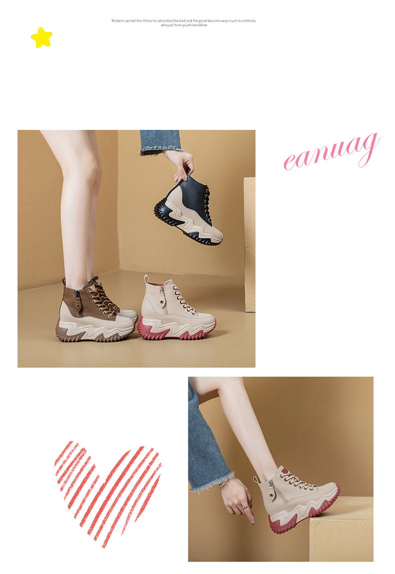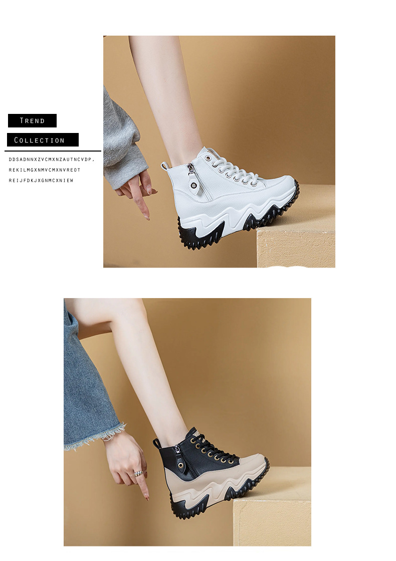 2025 가을 신상 여성용 두꺼운 밑창 운동화 7cm 키높이 캐주얼 여성 트렌디 숏부츠 레이스업 하이탑 여성화스토어 가기
