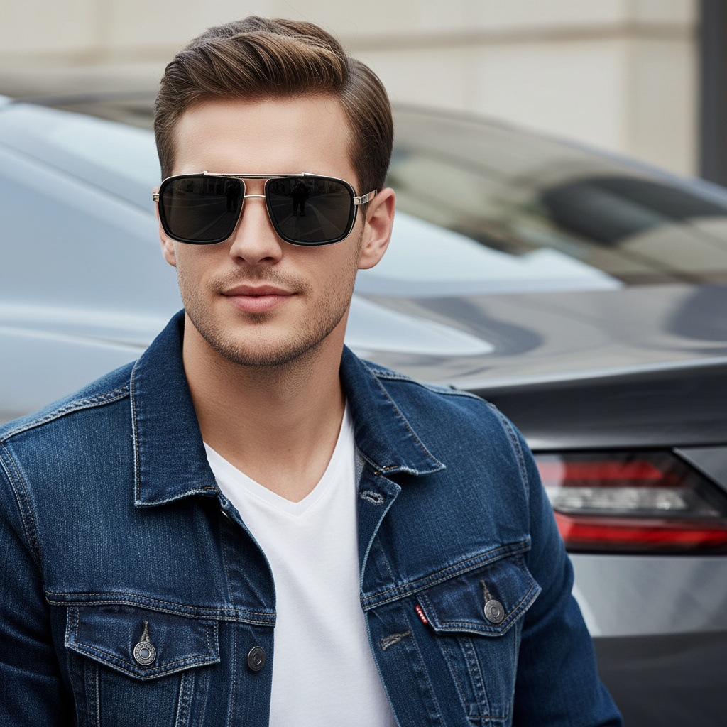 국경 간 새로운 할리 선글라스 패션 운전 안경 복고풍 두꺼운 사이드 더블 빔 금속 펑크 남성 선글라스