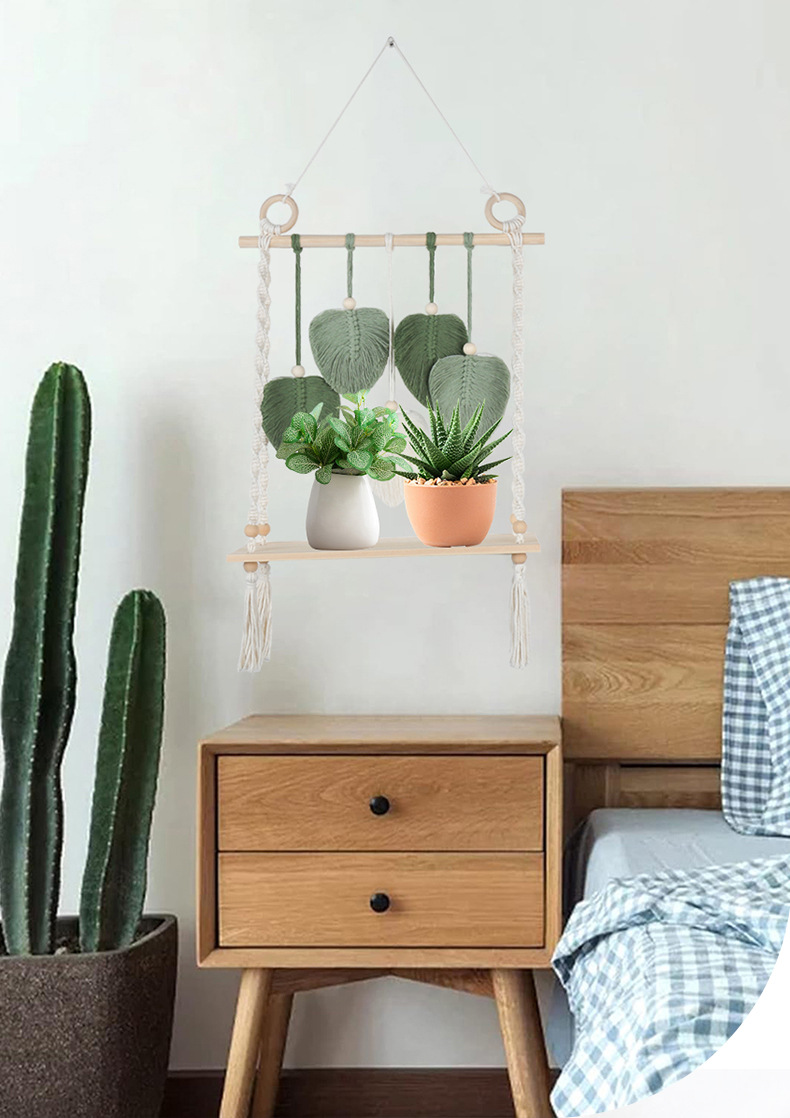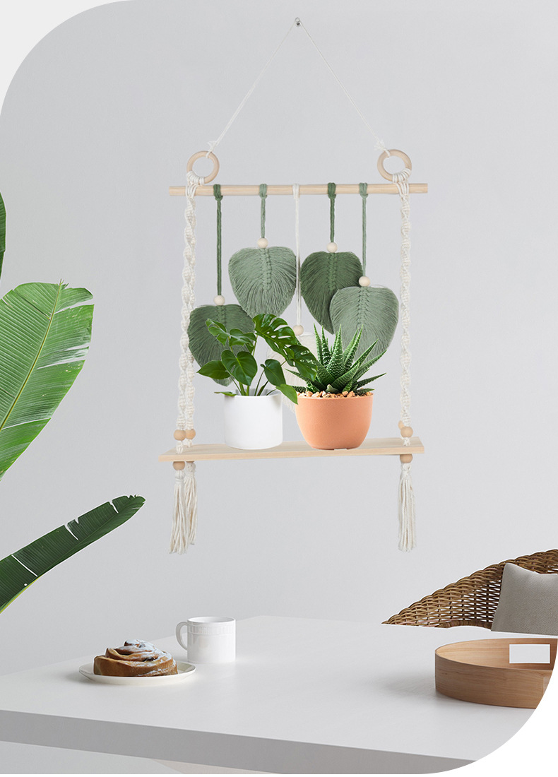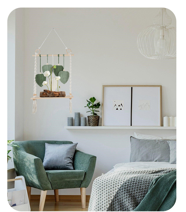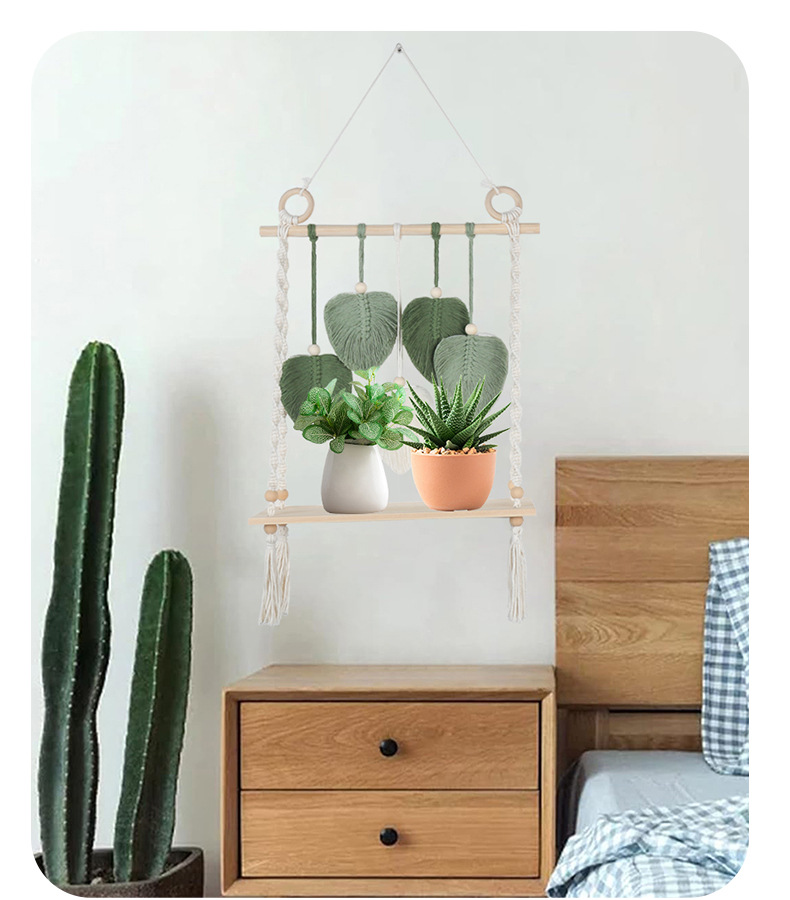 북유럽 간단한 스타일 손으로 짠 코튼 로프 우드 보드 스토리지 랙 벽 장식품 장식 펜던트 스토리지 랙스토어 가기