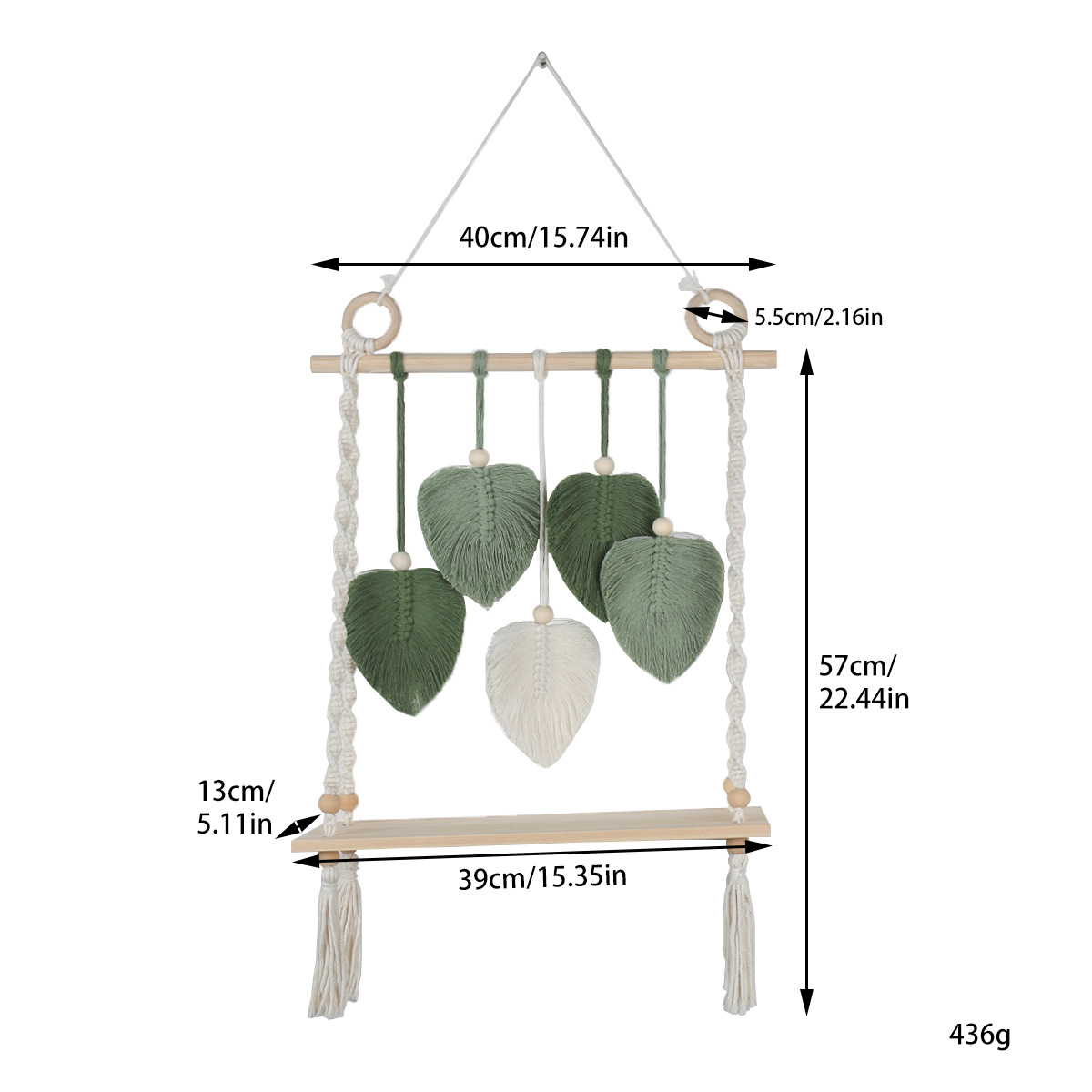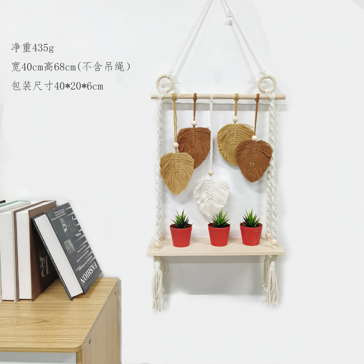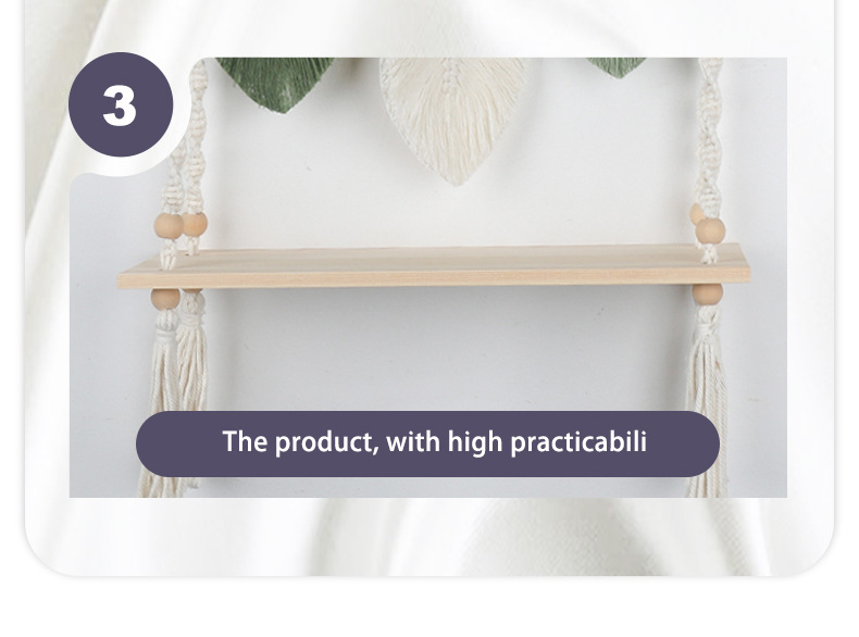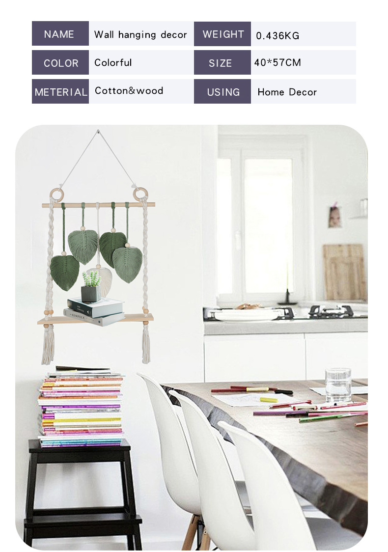북유럽 간단한 스타일 손으로 짠 코튼 로프 우드 보드 스토리지 랙 벽 장식품 장식 펜던트 스토리지 랙스토어 가기