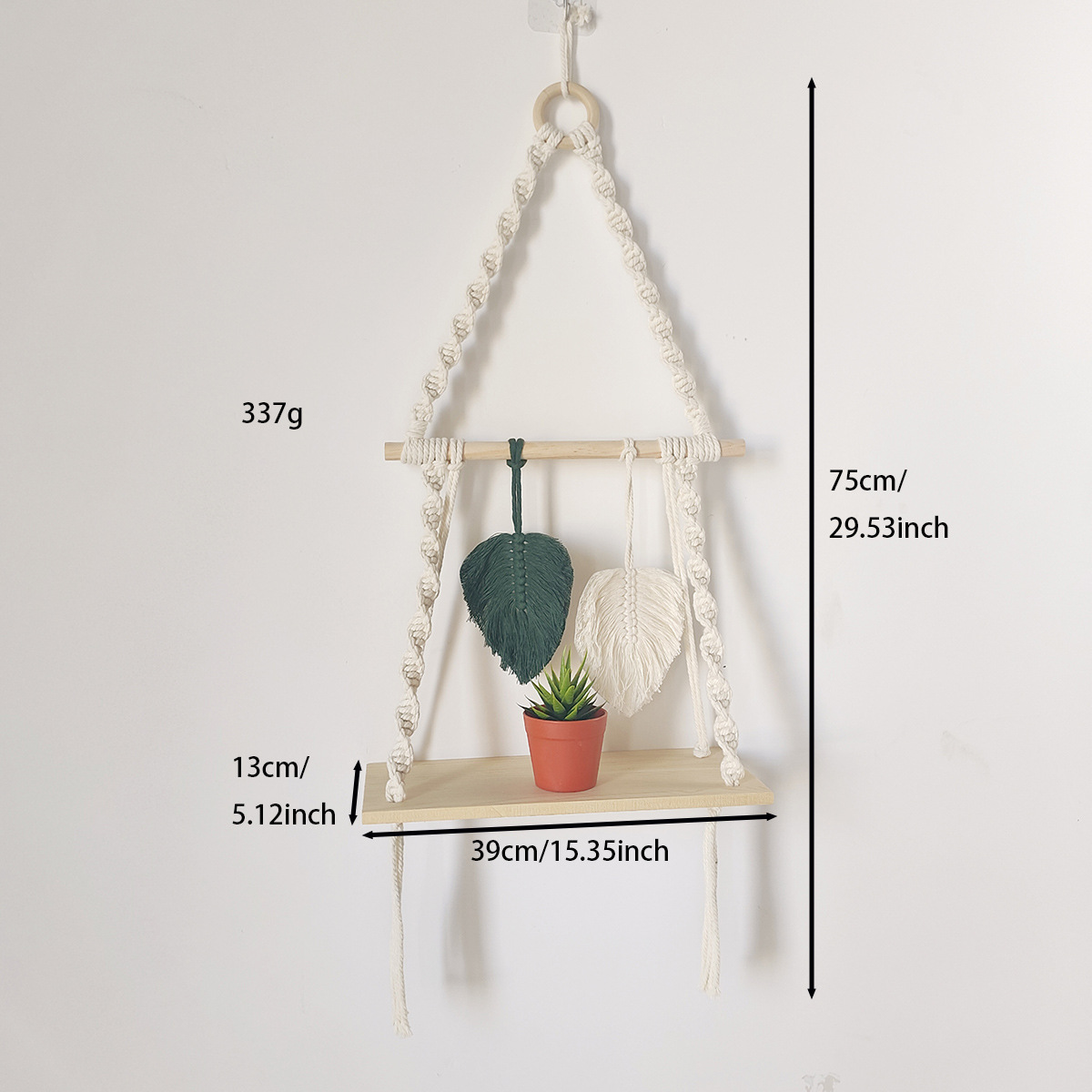 북유럽 간단한 스타일 손으로 짠 코튼 로프 우드 보드 스토리지 랙 벽 장식품 장식 펜던트 스토리지 랙