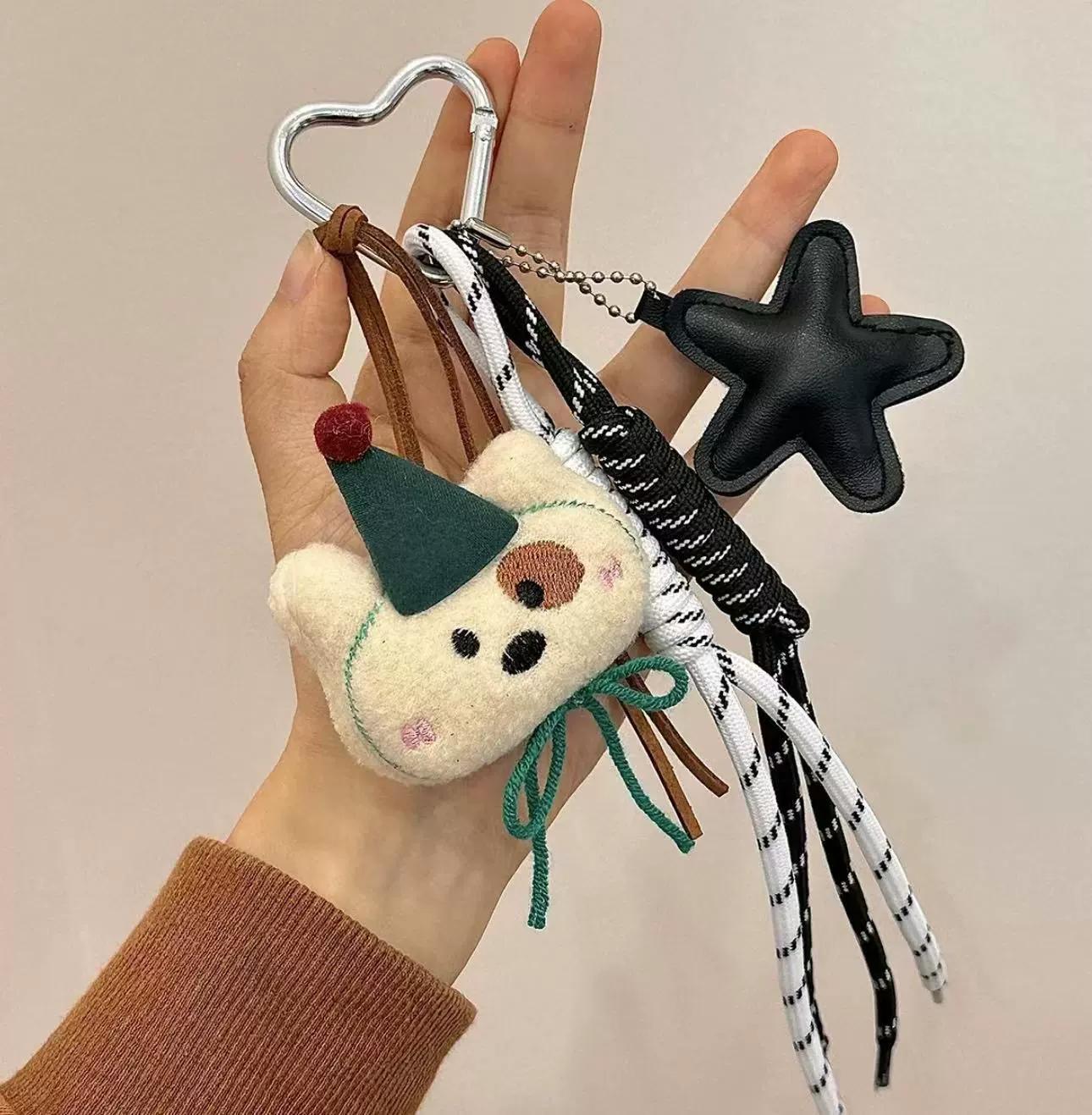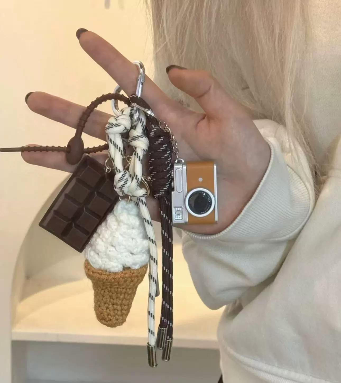 2024 핫 스타일 miu 스타일 알칼리성 물빵 땋은 로프 열쇠 고리 펜던트 가방 장식 펜던트 열쇠 고리