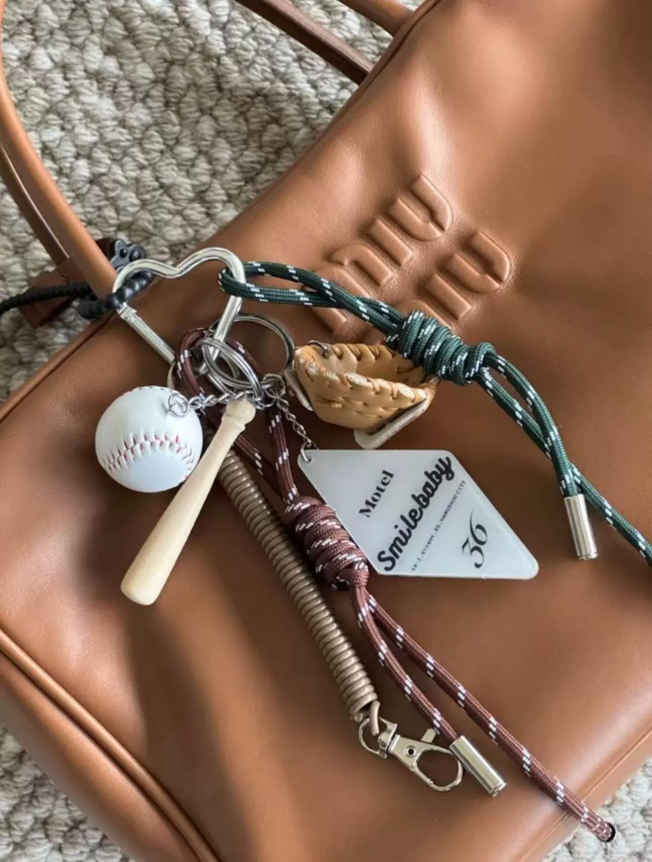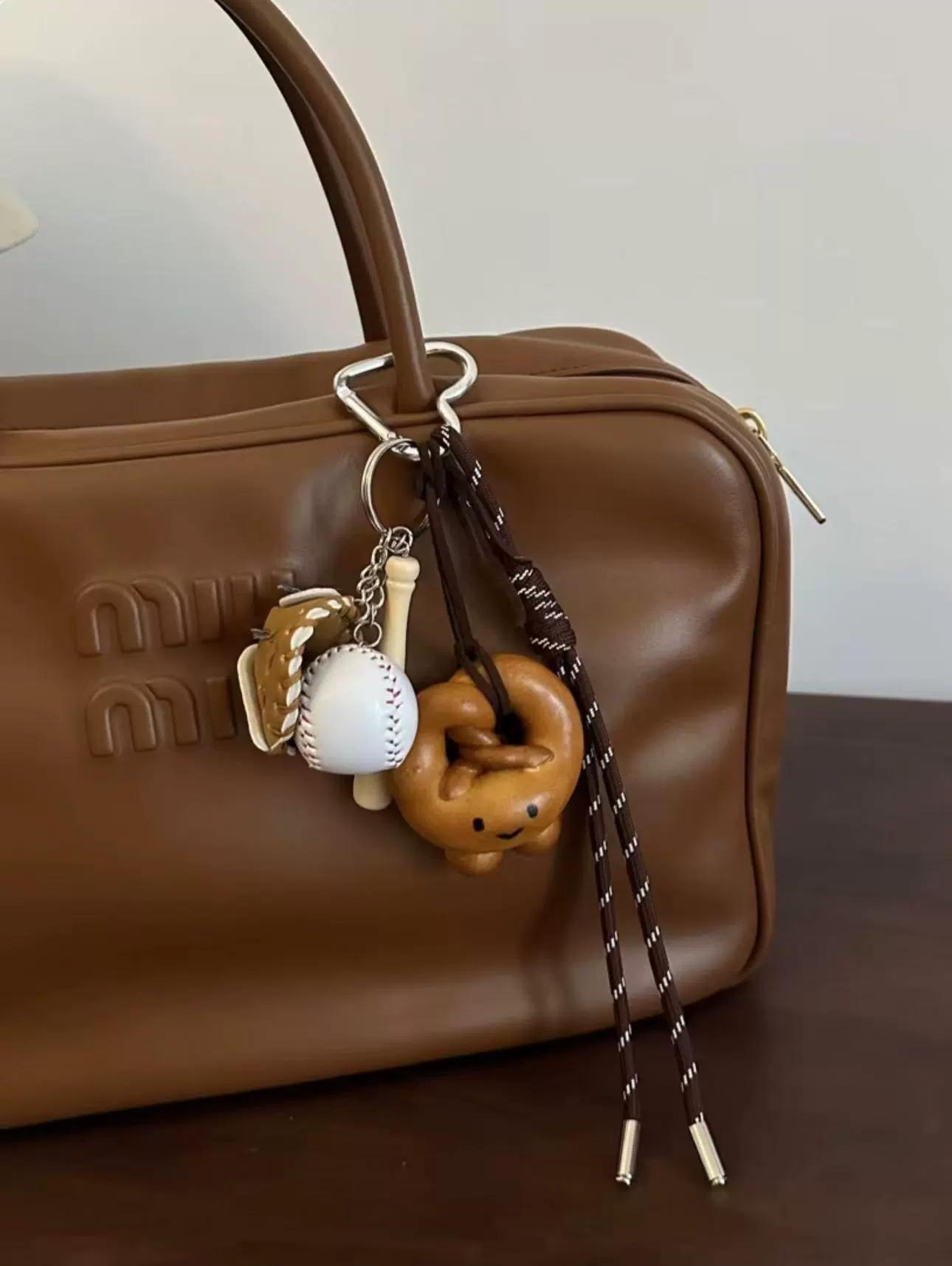 2024 핫 스타일 miu 스타일 알칼리성 물빵 땋은 로프 열쇠 고리 펜던트 가방 장식 펜던트 열쇠 고리스토어 가기