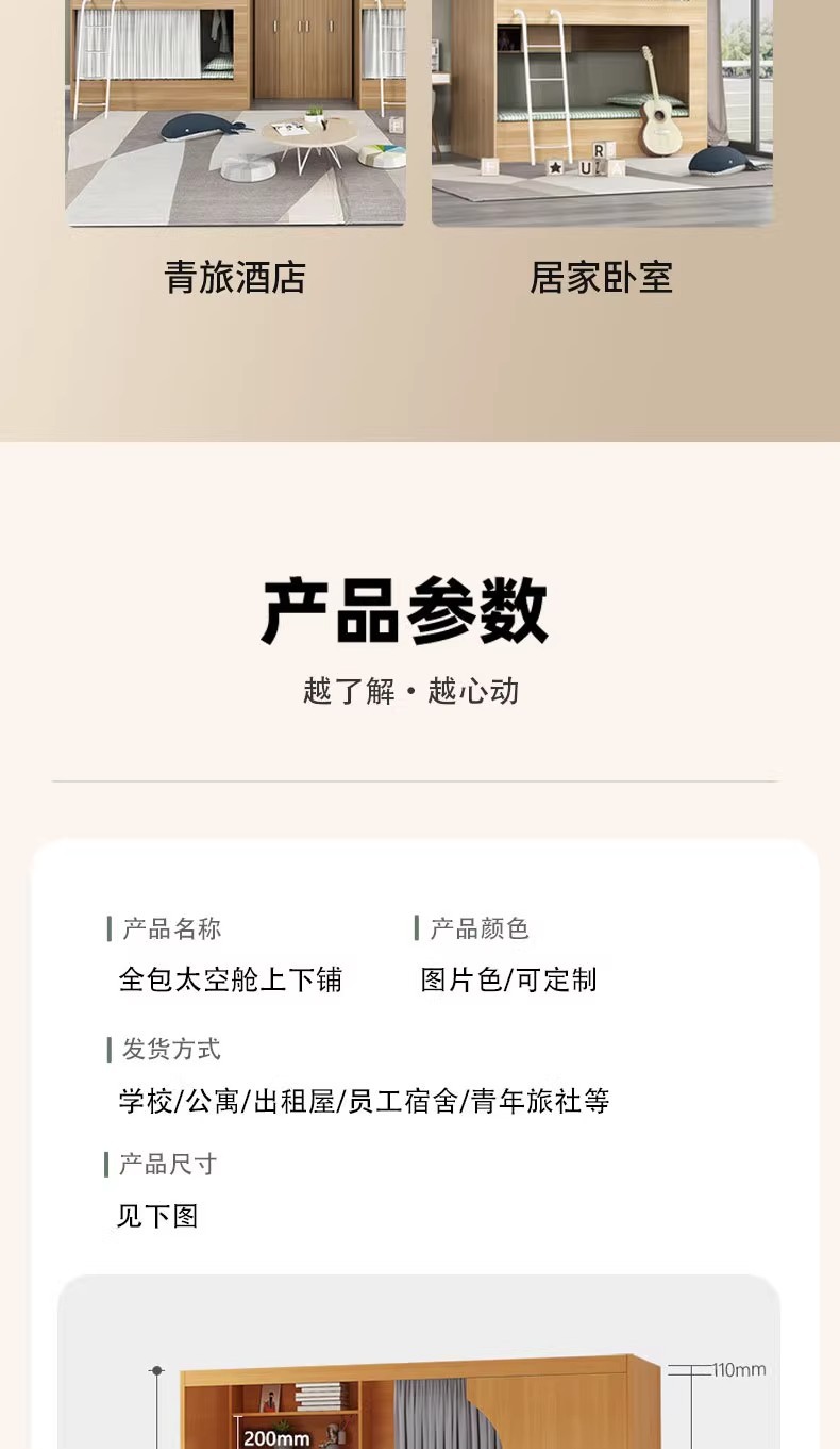 청소년 여행 홈스테이 벙크 침대 아파트 침대 학생 기숙사 단단한 나무 상하 벙크 전기 경쟁 호텔 공간 캡슐 상하 침대 공장스토어 가기