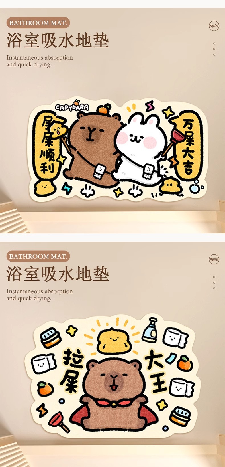 Capybara Shit 부드러운 창조적 인 흡수성 Diatom 진흙 소프트 매트 안티 슬립 매트 욕실 똥 킹 흡수성 카펫 매트스토어 가기
