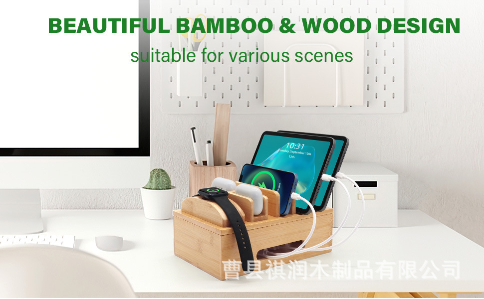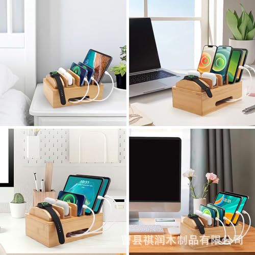대나무 충전 스테이션 랙 서랍 유형 데이터 케이블 상자 단단한 나무 저장 상자 데스크탑 휴대 전화 홀더 멀티 구획 저장