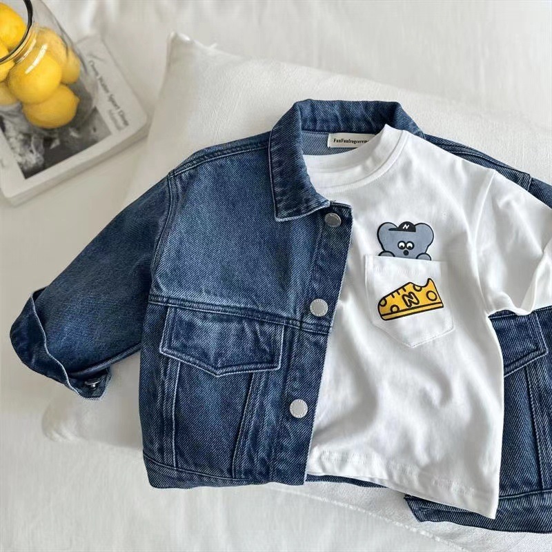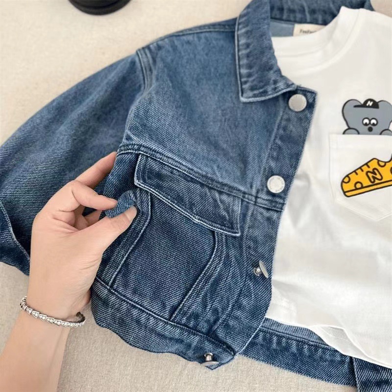 어린이 코트 2024 봄과 가을 패션 브랜드 레터 재킷 소년 소녀 아기의 빈티지 옷깃 올드 데님 탑스토어 가기