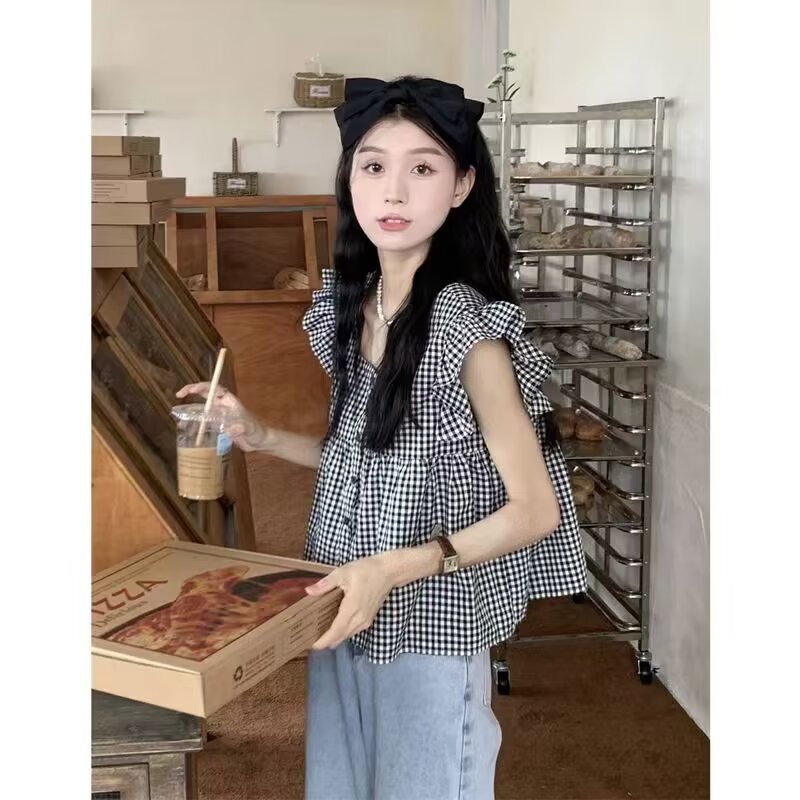 프랑스 스타일 스퀘어 칼라 버블 슬리브 반팔 쉬폰 셔츠 여성용 여름 플러스 사이즈 달콤한 세련된 짧은 인형 셔츠 탑스토어 가기