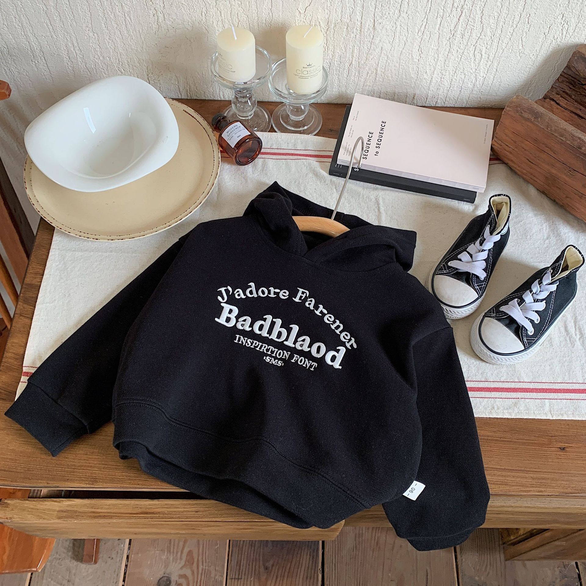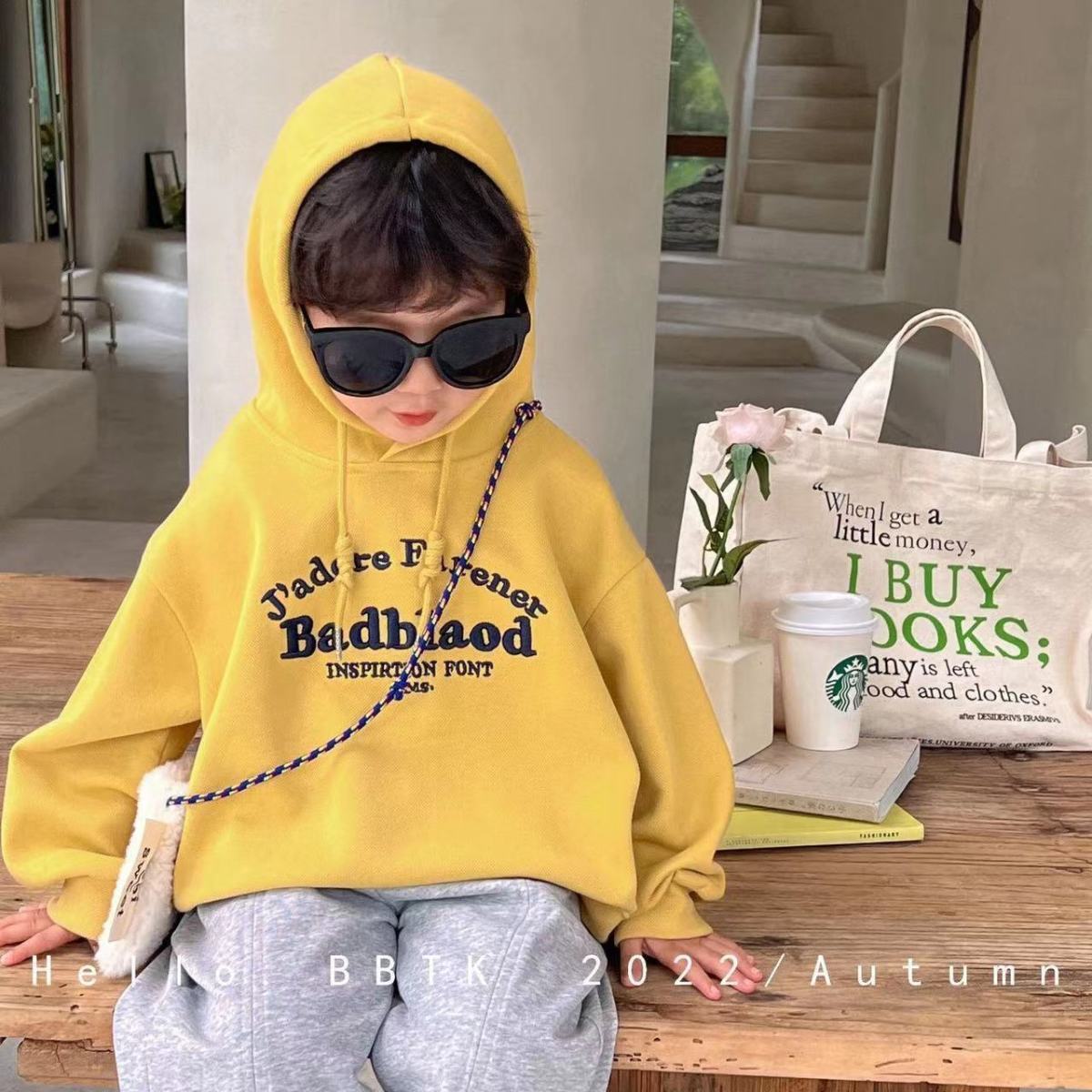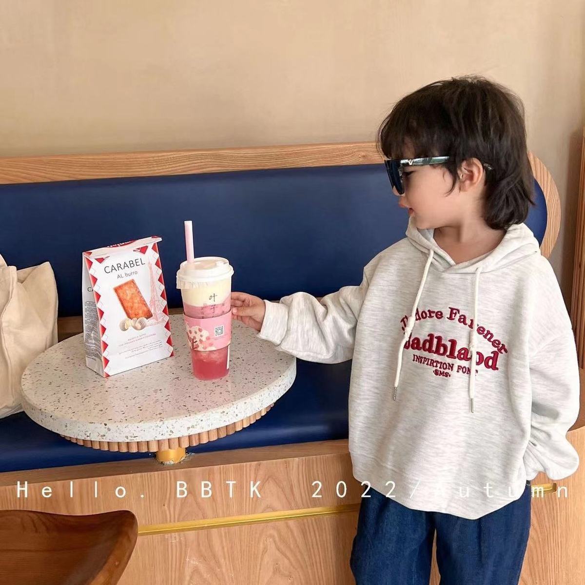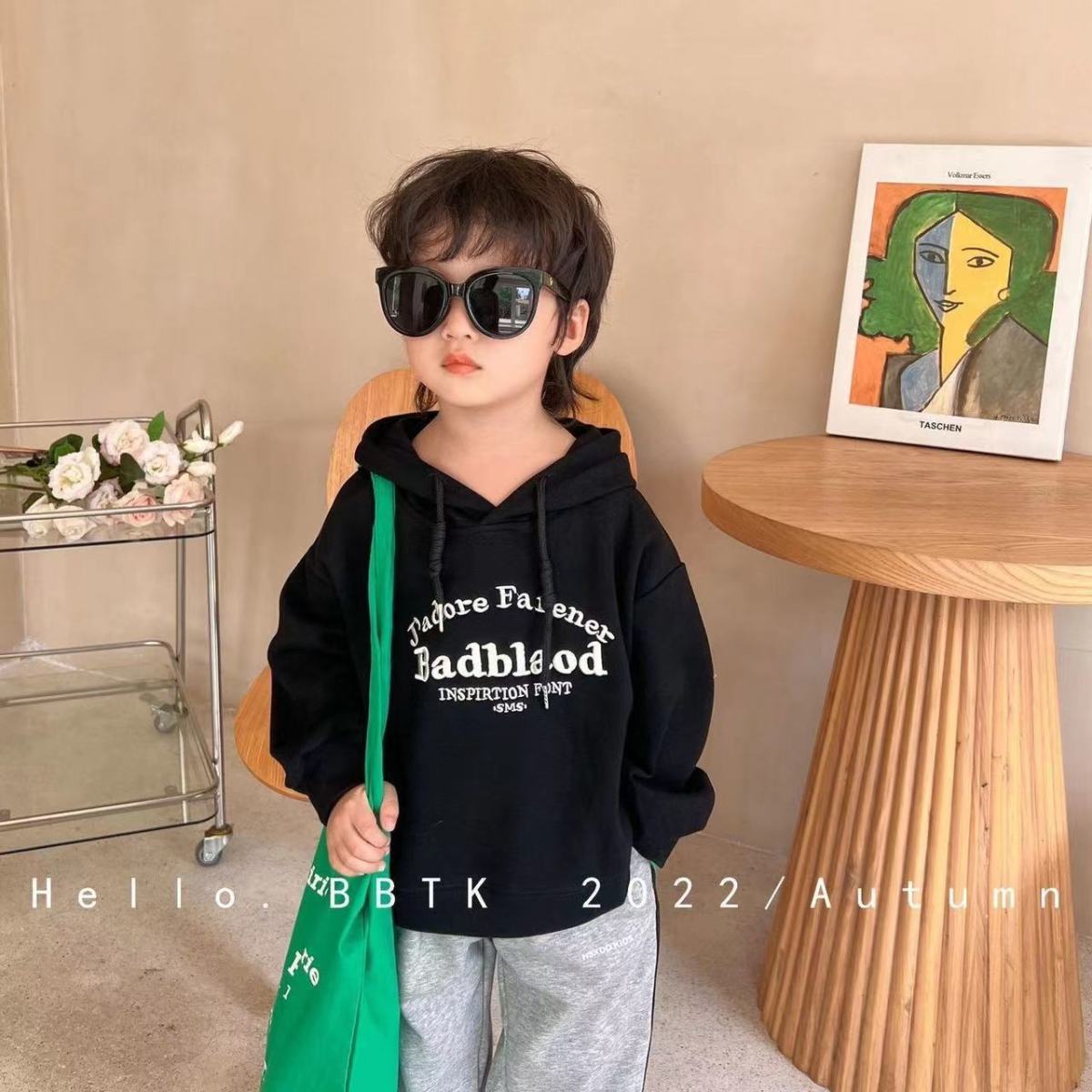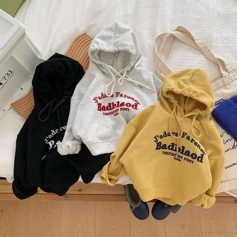 봄과 가을 남성과 여성의 어린이 착용 스웨트 셔츠 아기의 서양식 어린이 성격 유행 인터넷 인기 유행 한국 편지 자수 후디스토어 가기