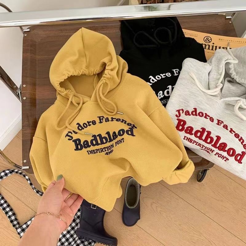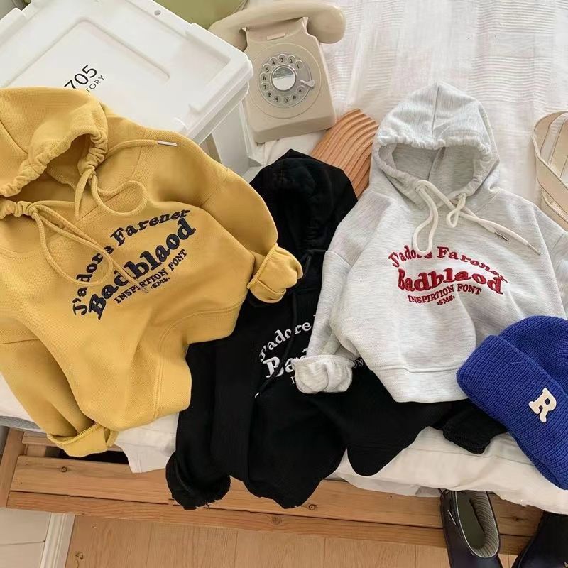 봄과 가을 남성과 여성의 어린이 착용 스웨트 셔츠 아기의 서양식 어린이 성격 유행 인터넷 인기 유행 한국 편지 자수 후디