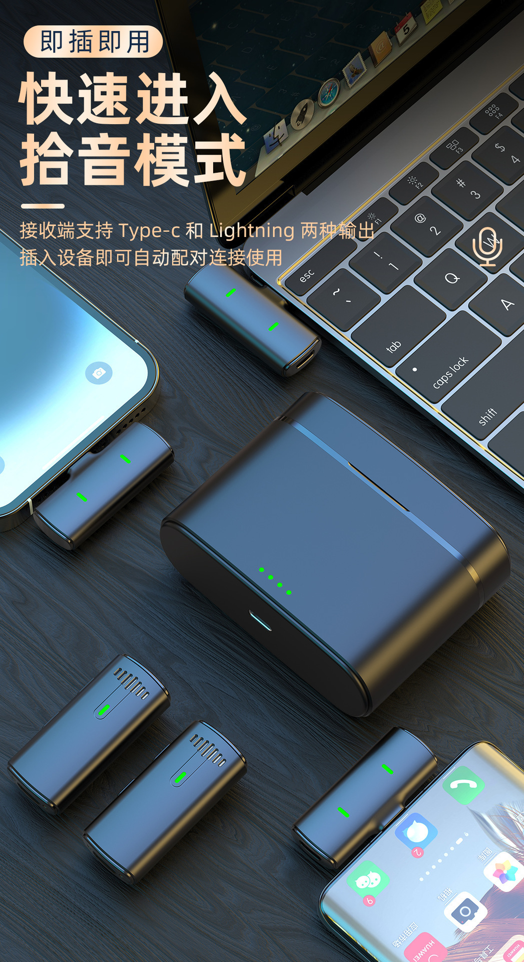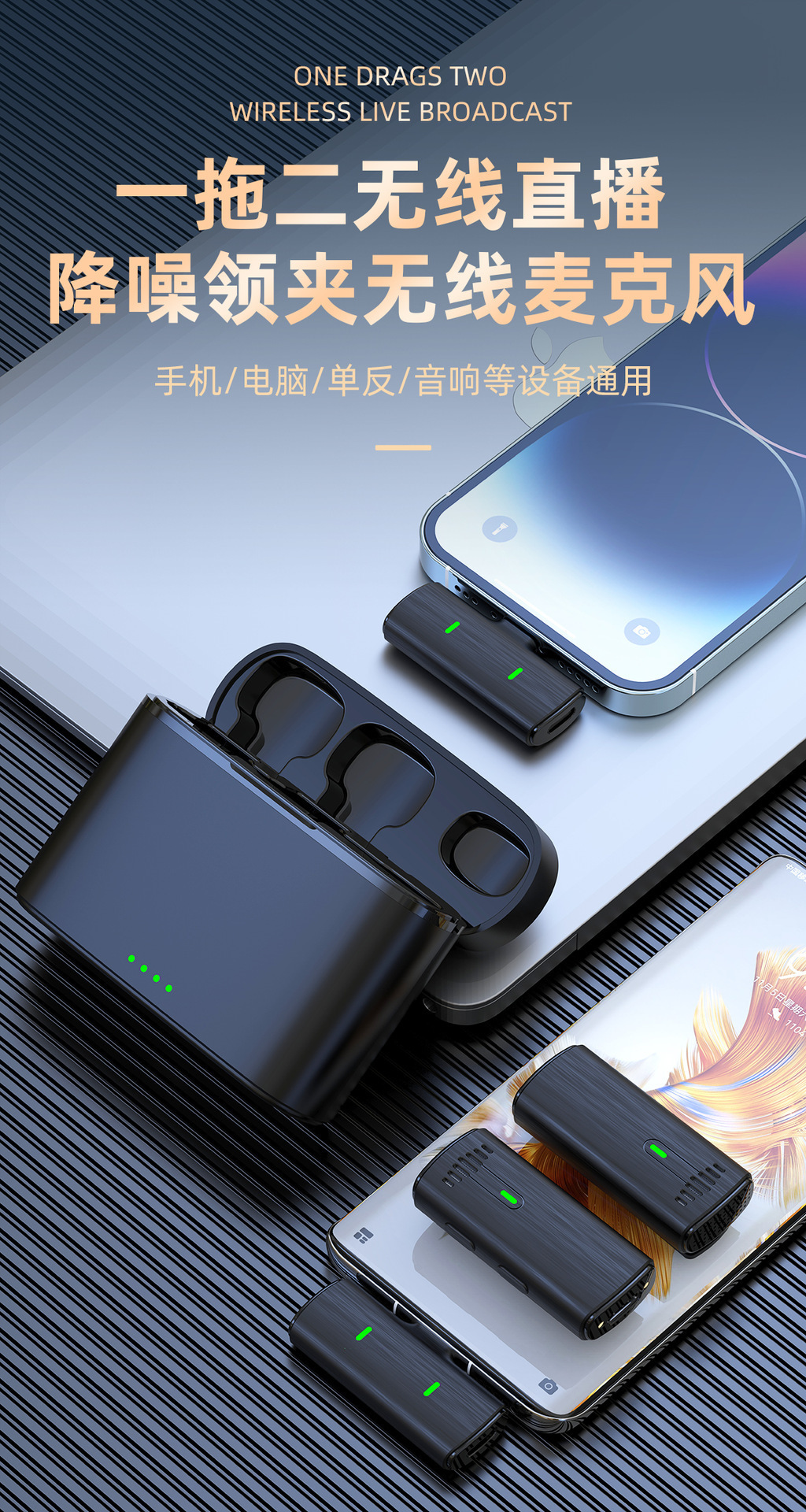 국경 간 K10 무선 라발리에 마이크 1-2 지능형 소음 감소 디지털 디스플레이 휴대 전화 마이크 라이브 방송 소형 마이크