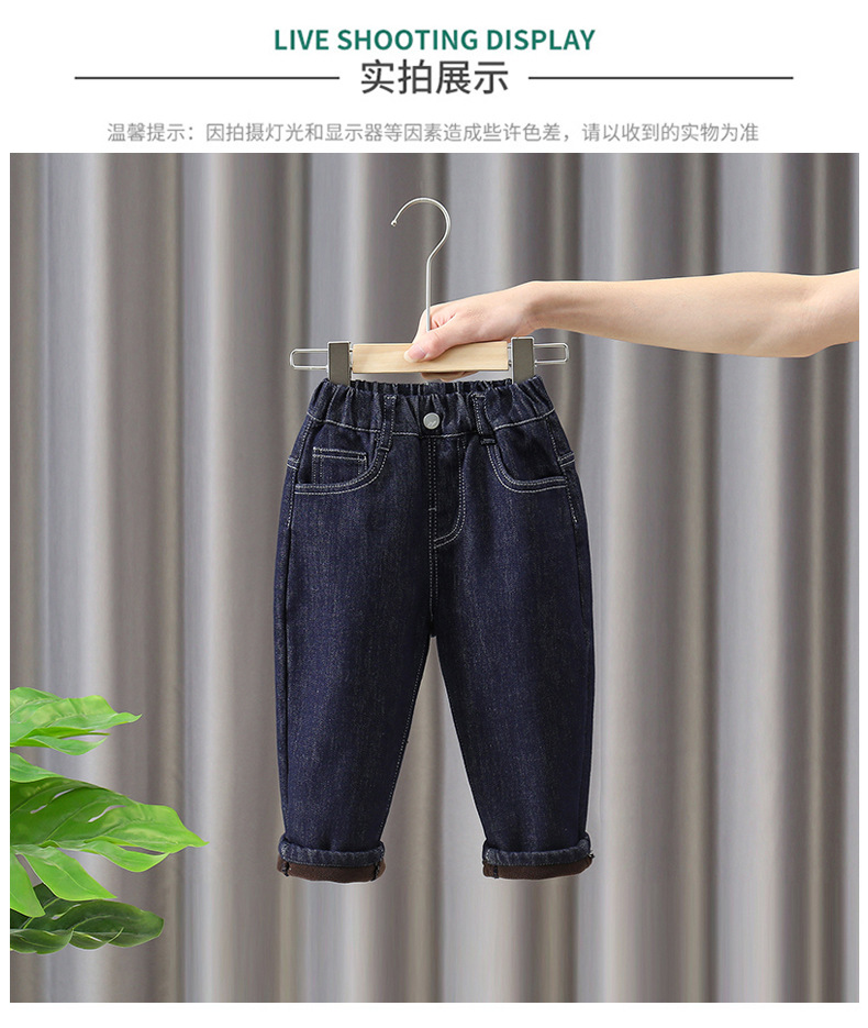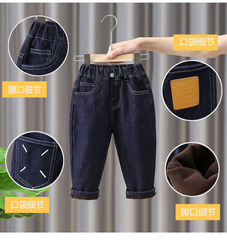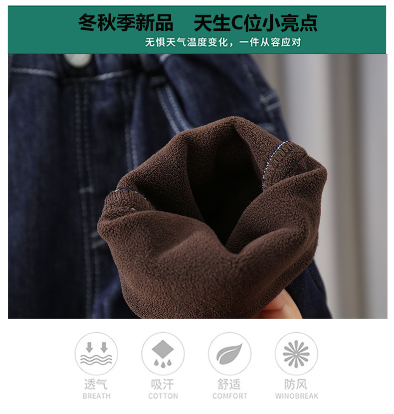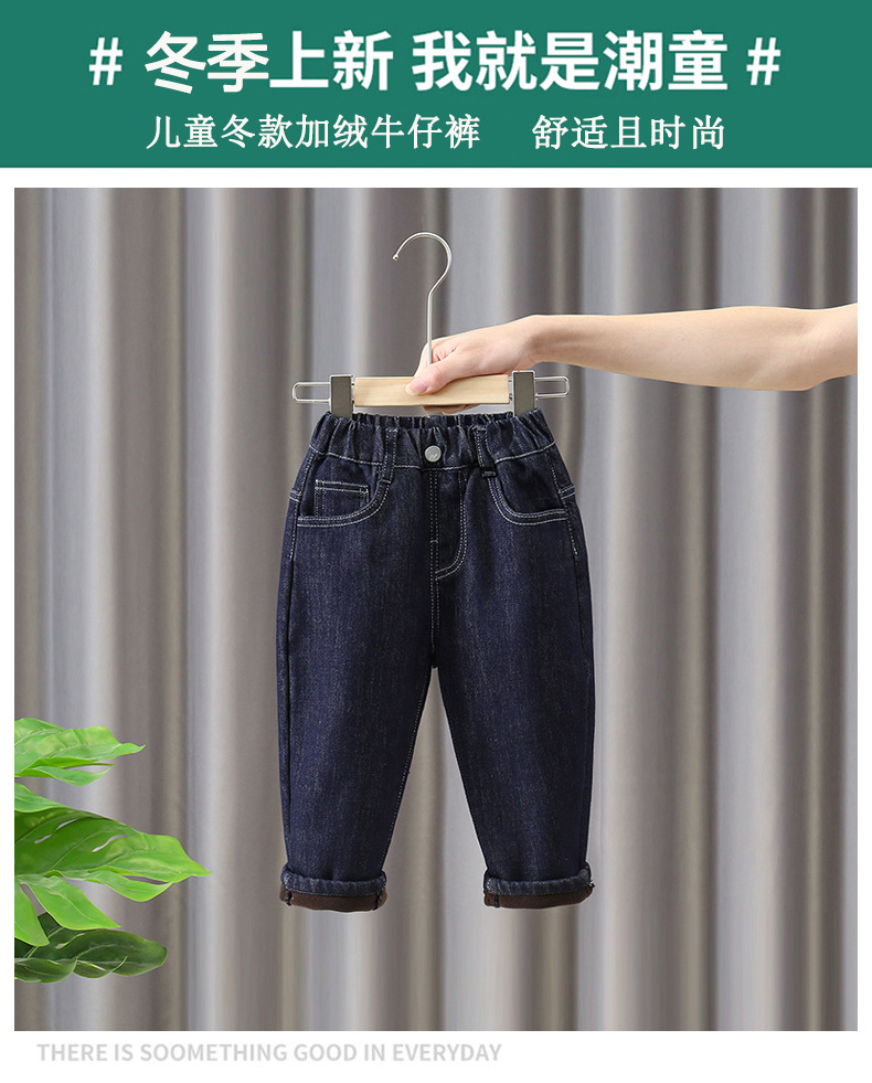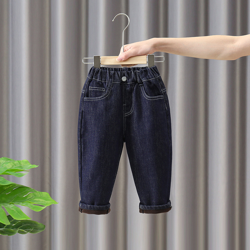 소년 기모 청바지 어린이 겨울옷 서양식 두꺼운 따뜻한 바지 아기의 시원하고 잘 생긴 캐주얼 한 원피스 벨벳 바지 트렌디스토어 가기