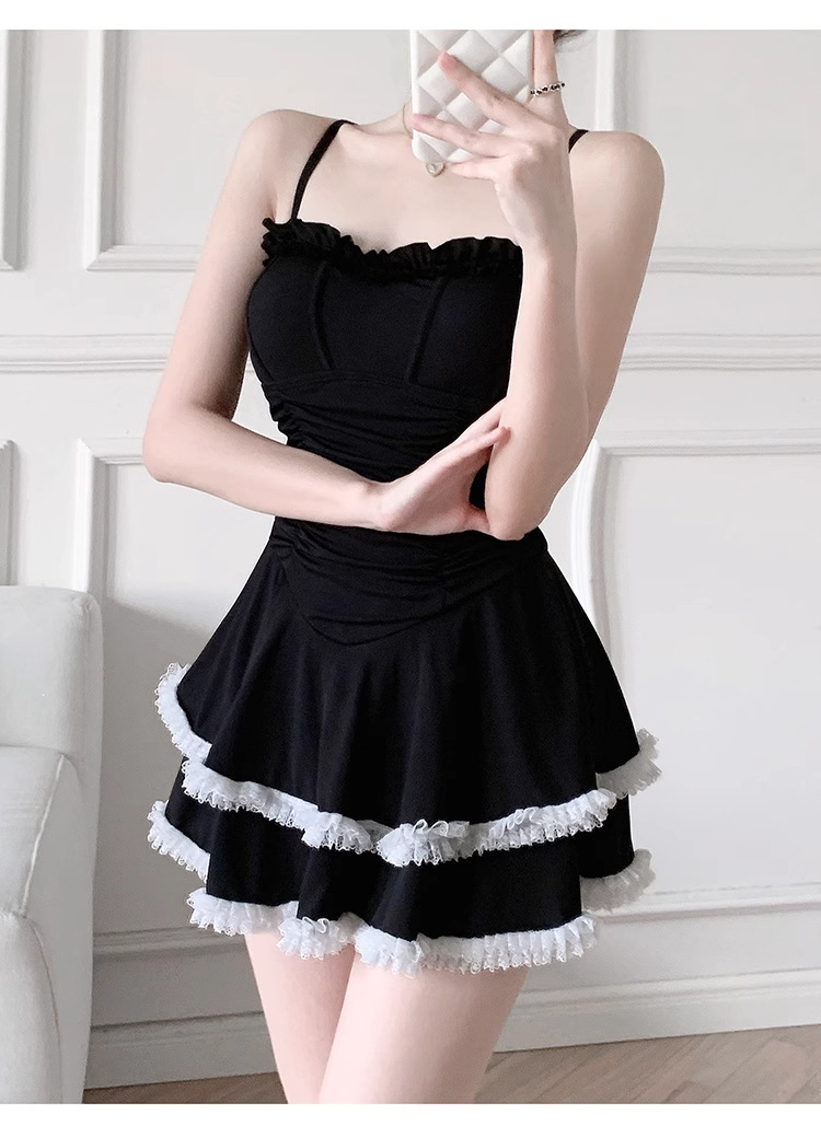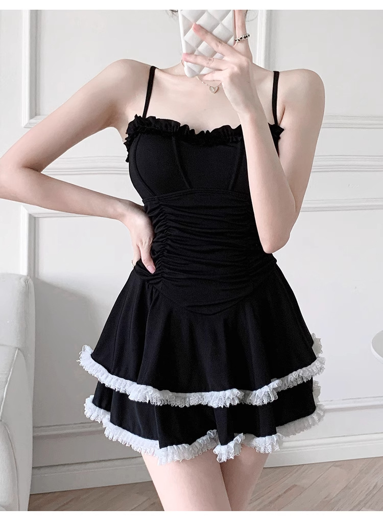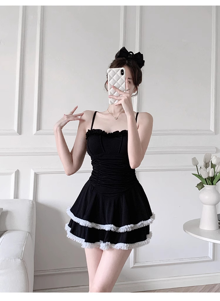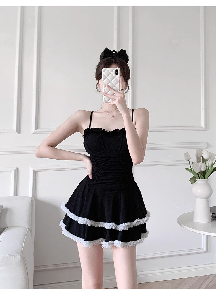 수영복 여성 원피스 스커트 보수적 학생 순수한 욕망 뒤없는 하이 엔드 약간의 뚱뚱한 소녀 벨리와 함께 슬리밍스토어 가기