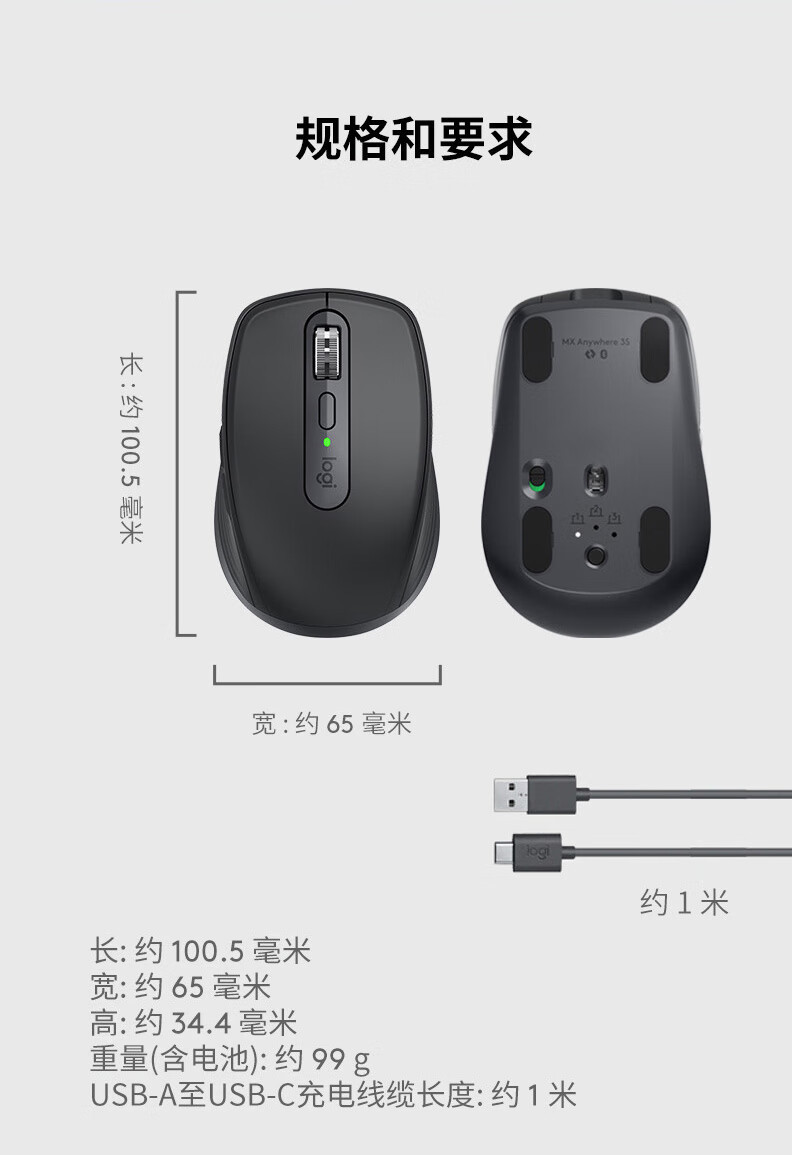 Logitech Master Series MXAnywhere3S 무선 Bluetooth 듀얼 모드 마우스 비즈니스 오피스 마우스 컴퓨터 액세서리스토어 가기
