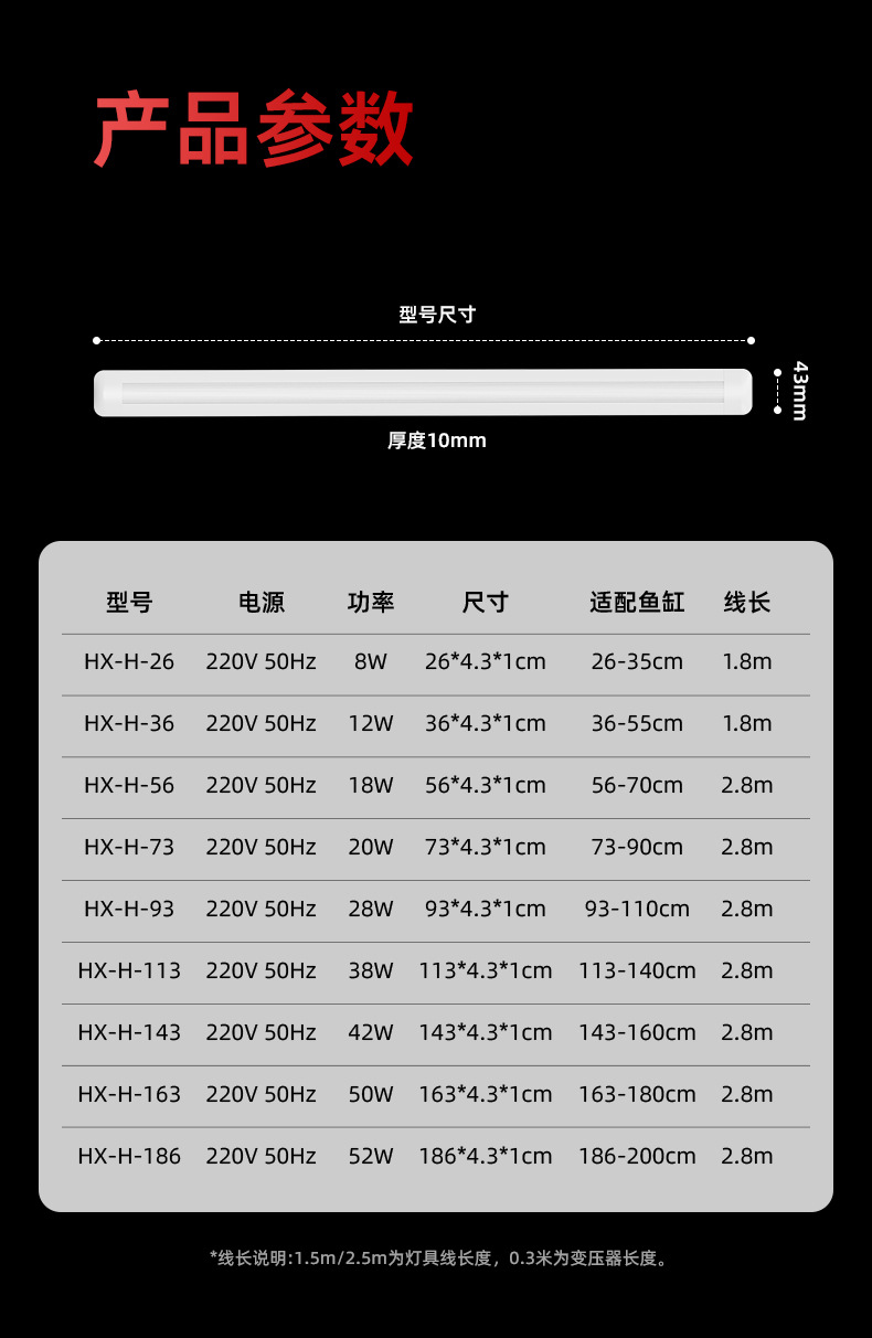 • 수조 조명 163cm 복열 램프 비즈 색상 강화 지능형 디밍 타이밍 [163-180cm 탱크용]