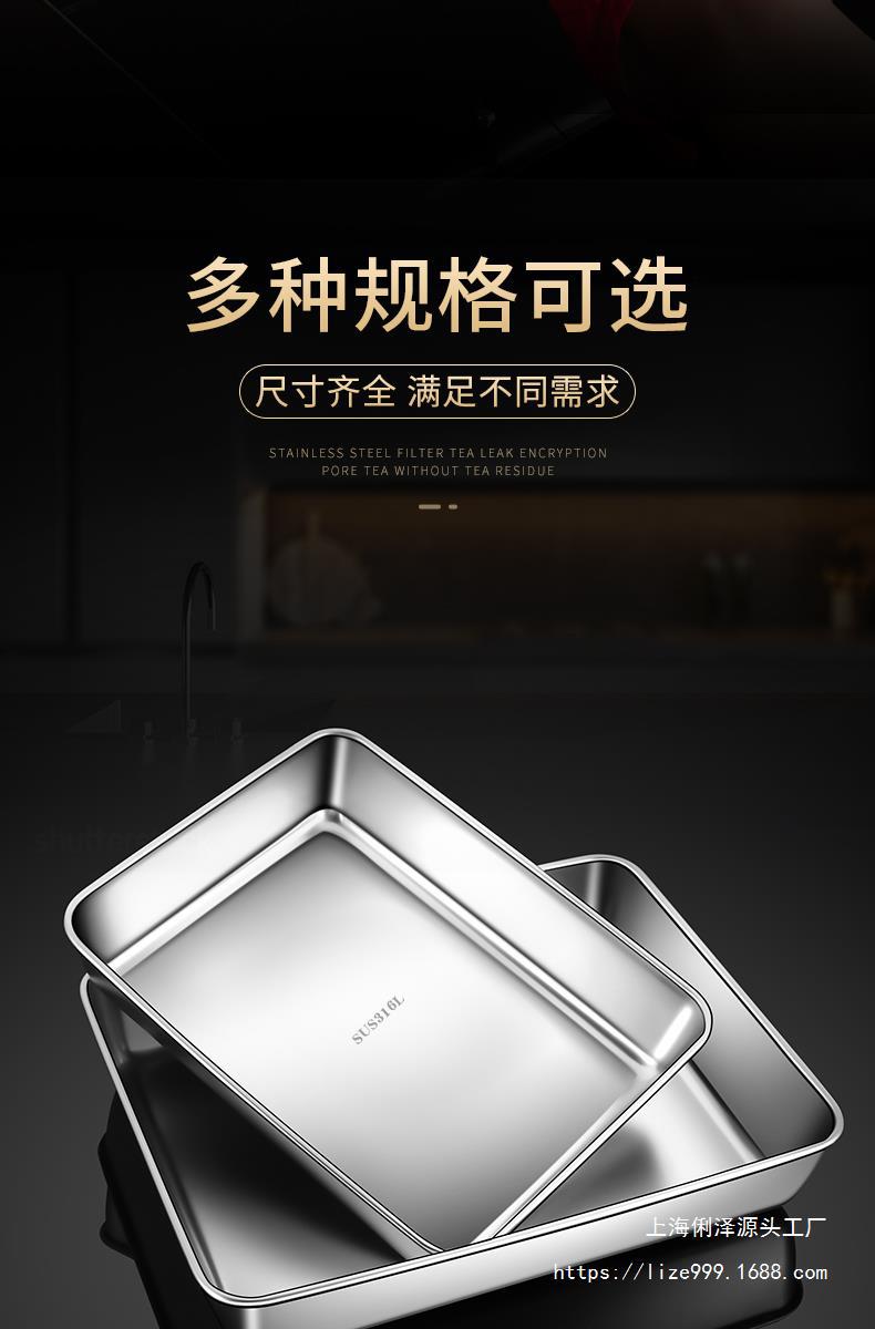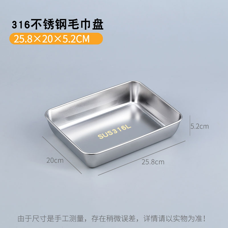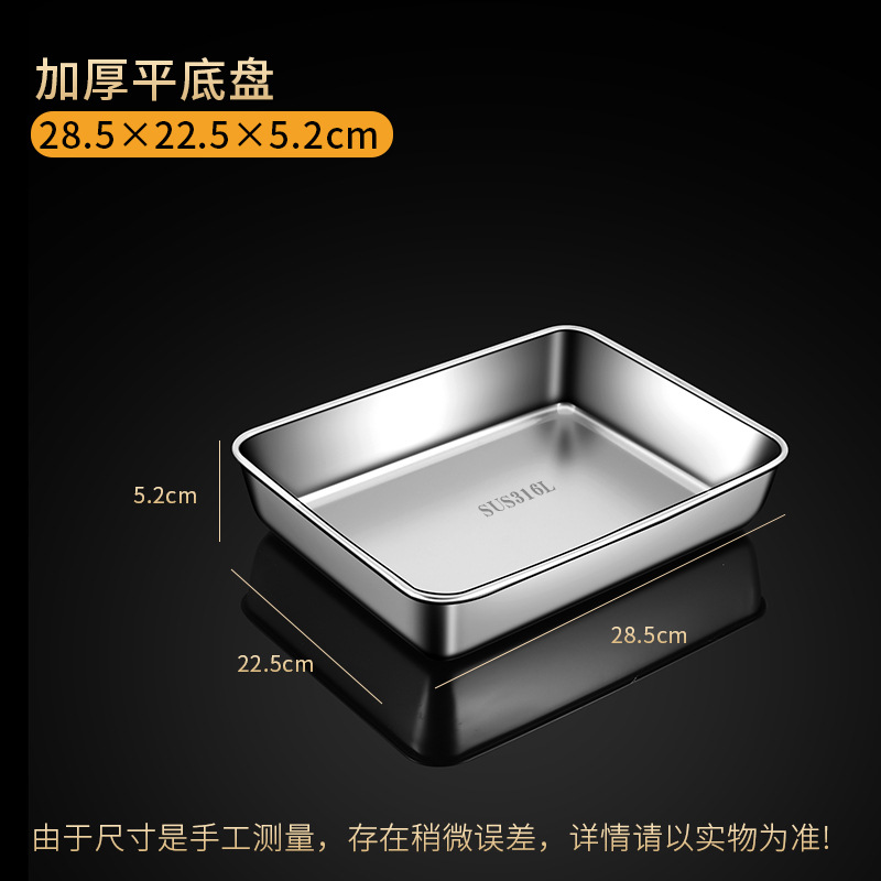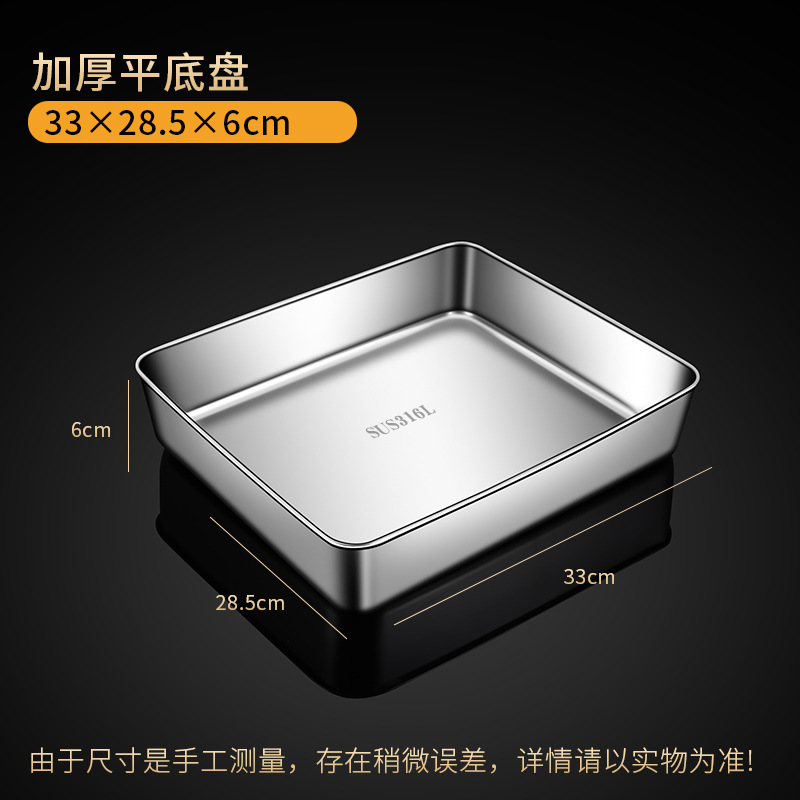 316 스테인레스 스틸 스퀘어 플레이트 플랫 바닥 플레이트 직사각형 트레이 식품 등급 야채 준비 상자 평면 바닥 북쪽 Xiangwo스토어 가기