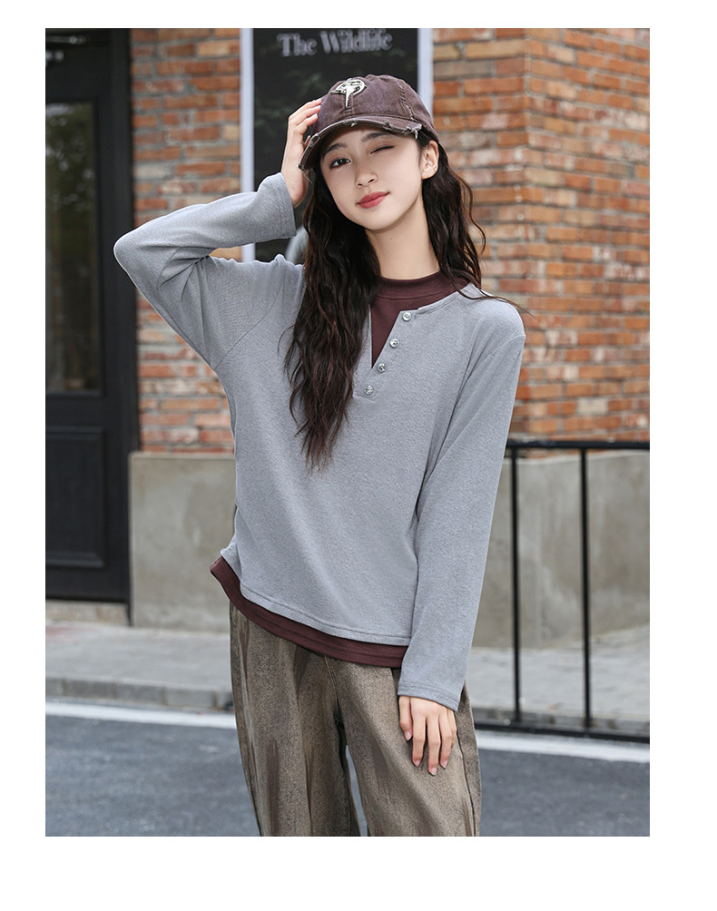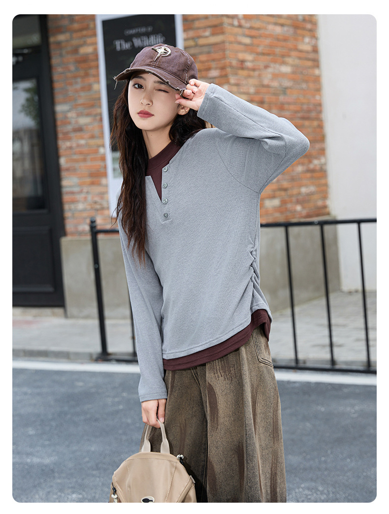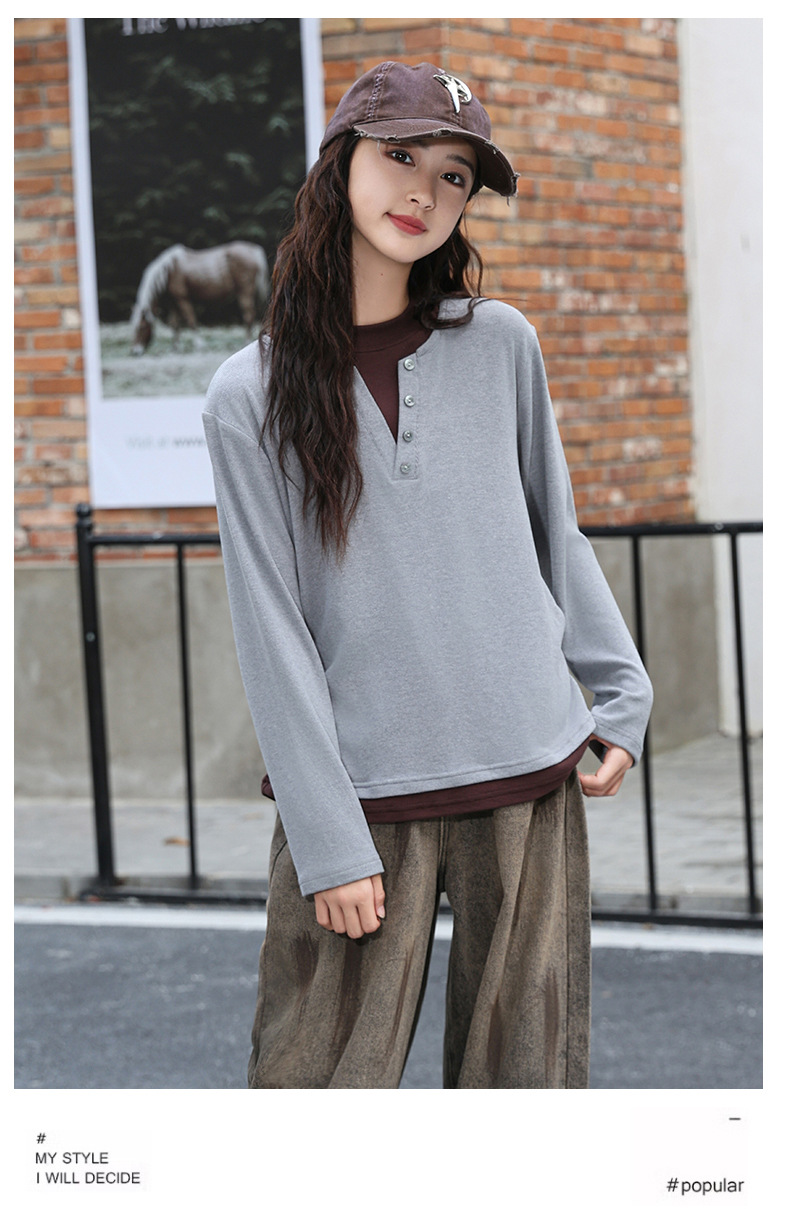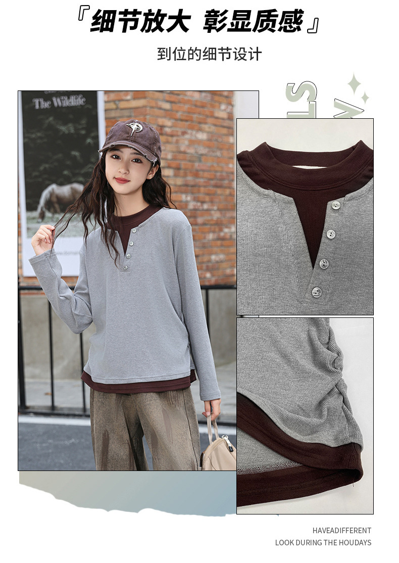 걸스 병투 셔츠 큰 어린이 플러스 사이즈 느슨한 가짜 투피스 긴팔 티셔츠 슬리밍 스웨터 중학교 학생에게 유행스토어 가기