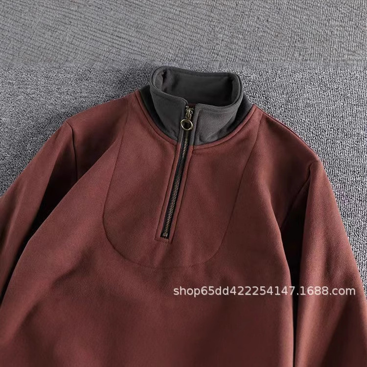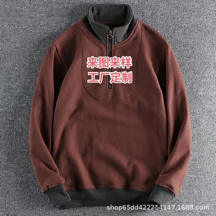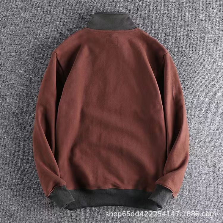 공장 맞춤형 남성용 하프 지퍼 스탠드 칼라 대비 색상 스웨트 셔츠 루즈 캐주얼 스포츠 가을, 겨울 트렌디 탑 재킷스토어 가기