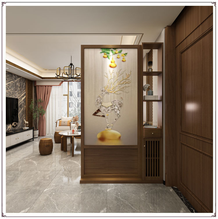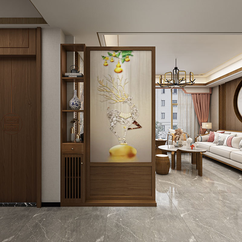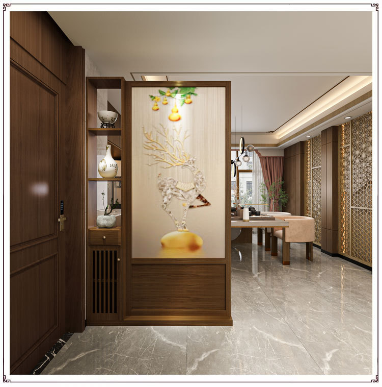 가벼운 고급 새로운 중국 스타일 입구 스크린 캐비닛 단단한 나무 파티션 거실 간단한 현대 문 덮개 랙