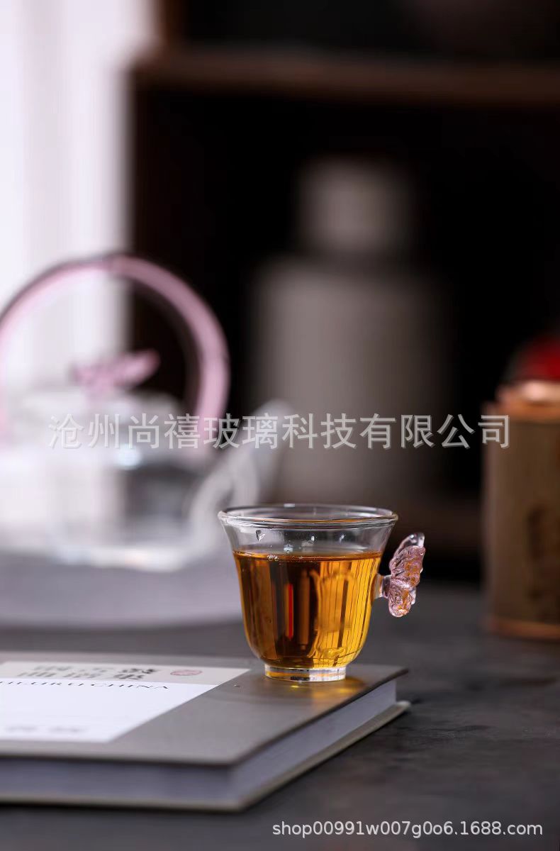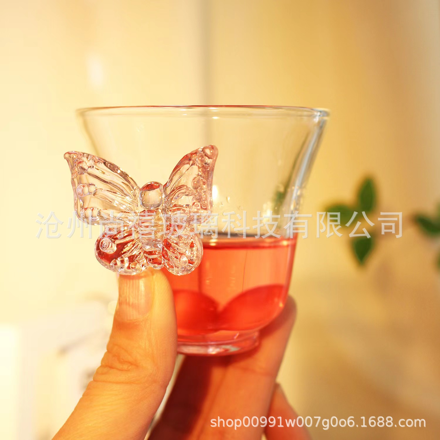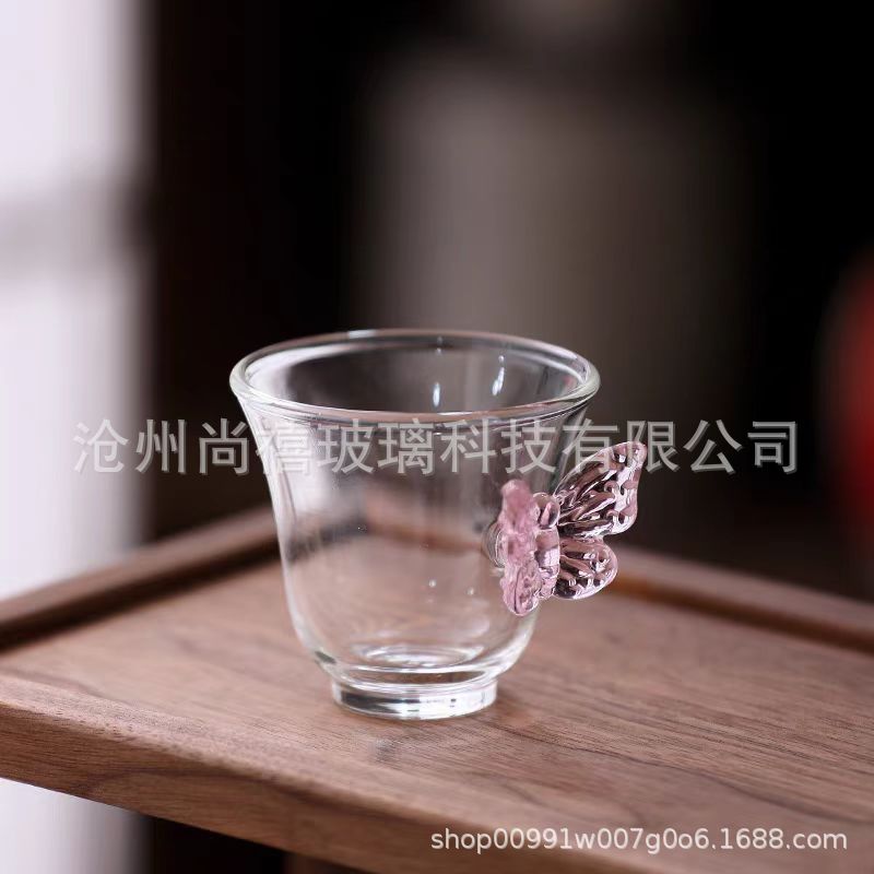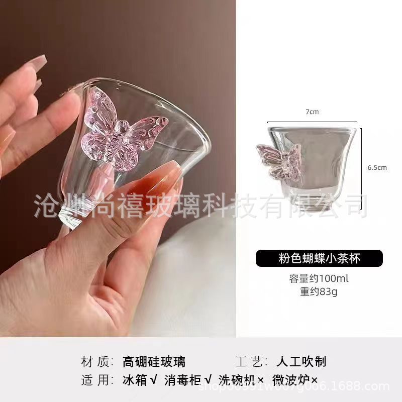 주인컵 핑크 나비 유리컵 주인컵과 받침대 사랑의 컵 내열성 고붕규산 유리 가정용 차컵 티컵스토어 가기