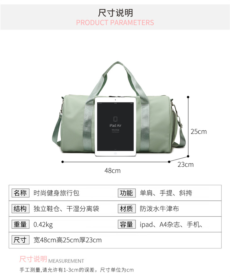 인터넷 유명 스포츠 여행 가방 요가 피트니스 가방 대용량 휴대용 수하물 가방 건조하고 젖은 별도의 보관 훈련 가방 트렌디