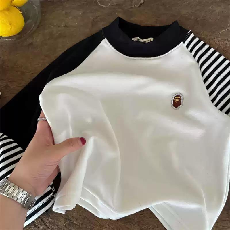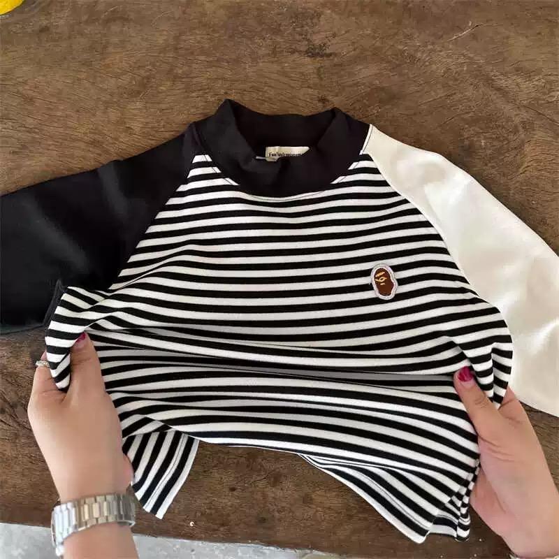 어린이 벨벳베이스 셔츠 가을과 겨울 소년과 소녀 만화 긴팔 티셔츠 아기 줄무늬 높은 칼라 어린이 최고 트렌디 T스토어 가기