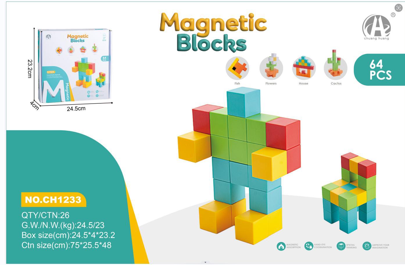 • 컬러 큐브 입체 자기 빌딩 블록 64PCS