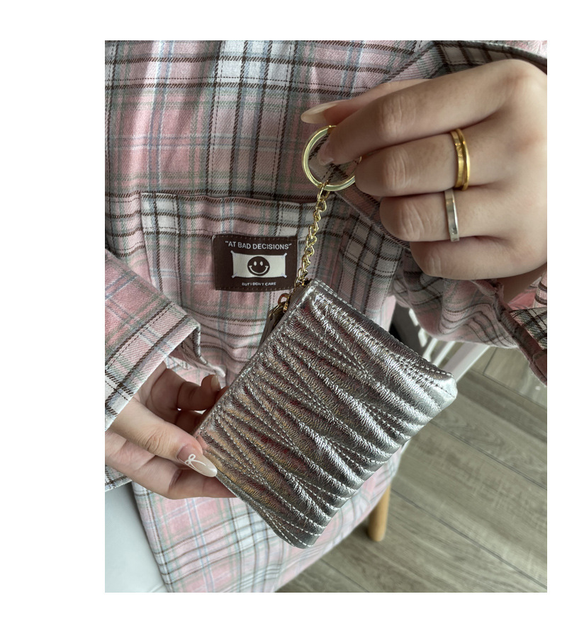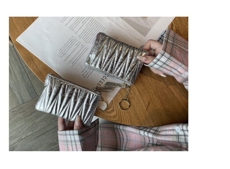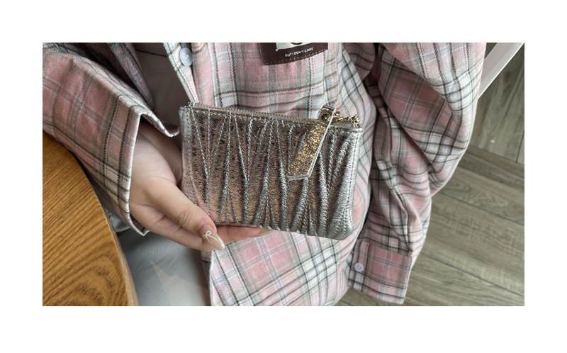 탑 레이어 소 가죽 주름 동전 지갑 여성의 신선한 달콤한 틈새 진짜 가죽 키 카드 가방 지퍼 핸드백스토어 가기