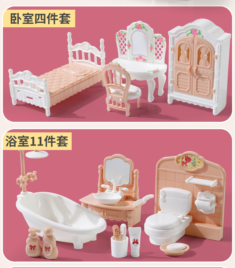 공장 직접 국경 미니 놀이 집 교육 장난감 시뮬레이션 주방 욕실 거실 침실 어린이 놀이 집