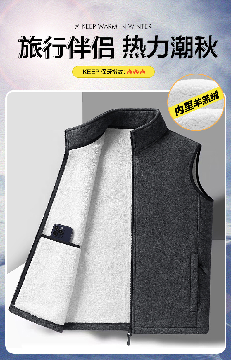 양털 중년 및 노인 조끼 남자 가을 및 겨울 아빠의 코트 기모 따뜻한 왁스 코트 캐주얼 양털 재킷 조끼