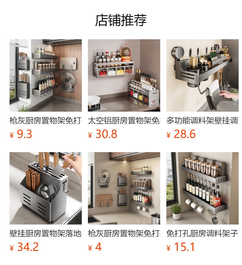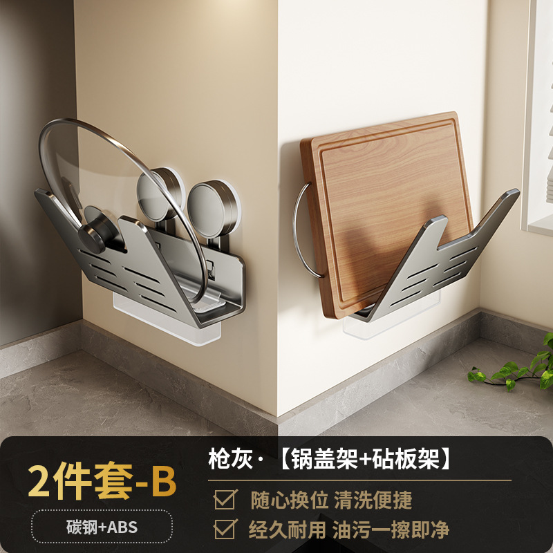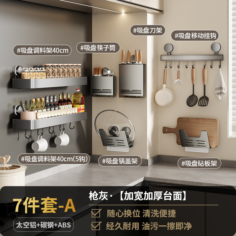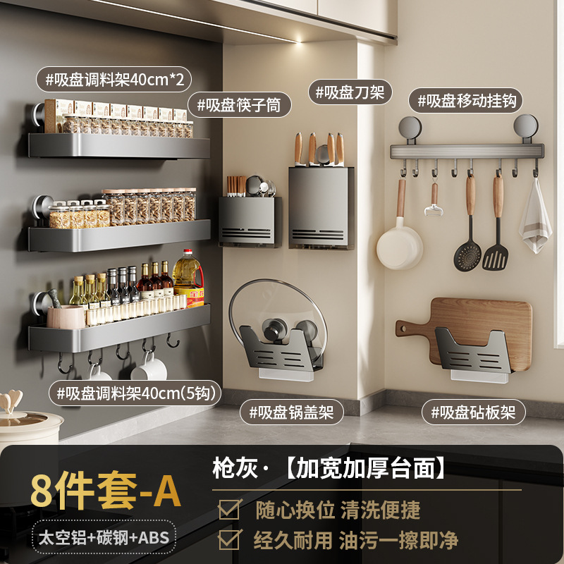 흡입 컵 주방 보관 랙 총 애쉬 다기능 벽 주방 용품 보관 세트 펀치없는 벽 장착 조정 랙