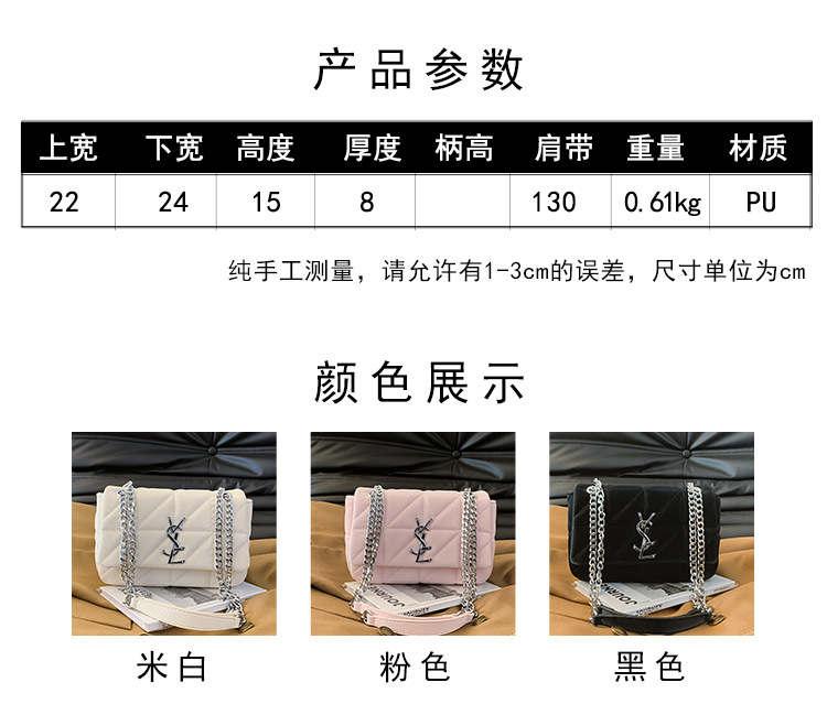 국경 간 샤넬 스타일 다이아몬드 체인 언더암 백 2024 새로운 한국 스타일 유행 작은 광장 가방 올 매치 숄더 크로스 바디 백