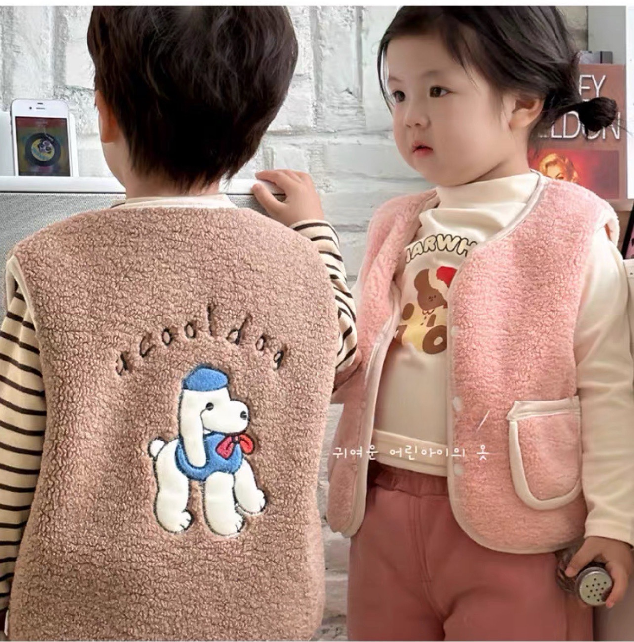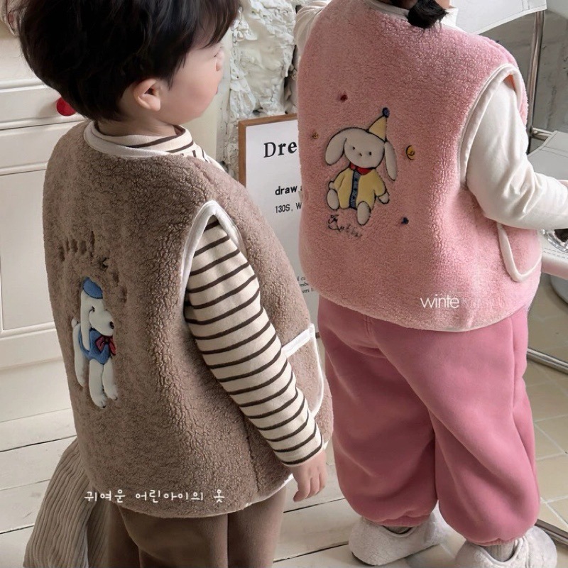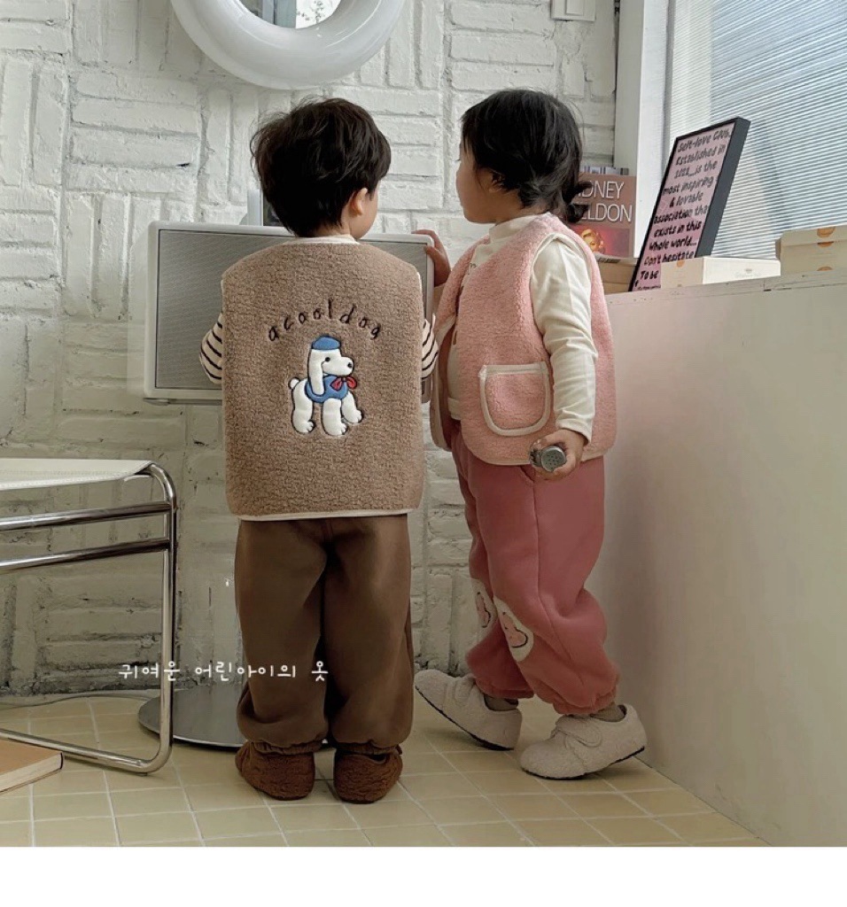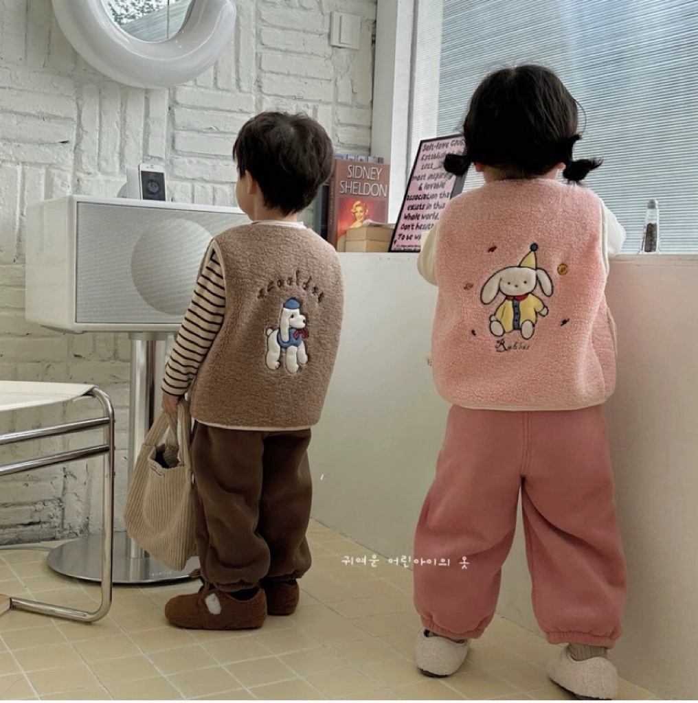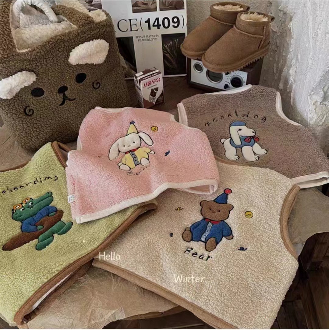 어린이 양털 만화 수 놓은 한국어 버전 귀여운 조끼 카테고리 A 소년과 소녀 겨울 코어 따뜻하고 두꺼운 1 도매스토어 가기