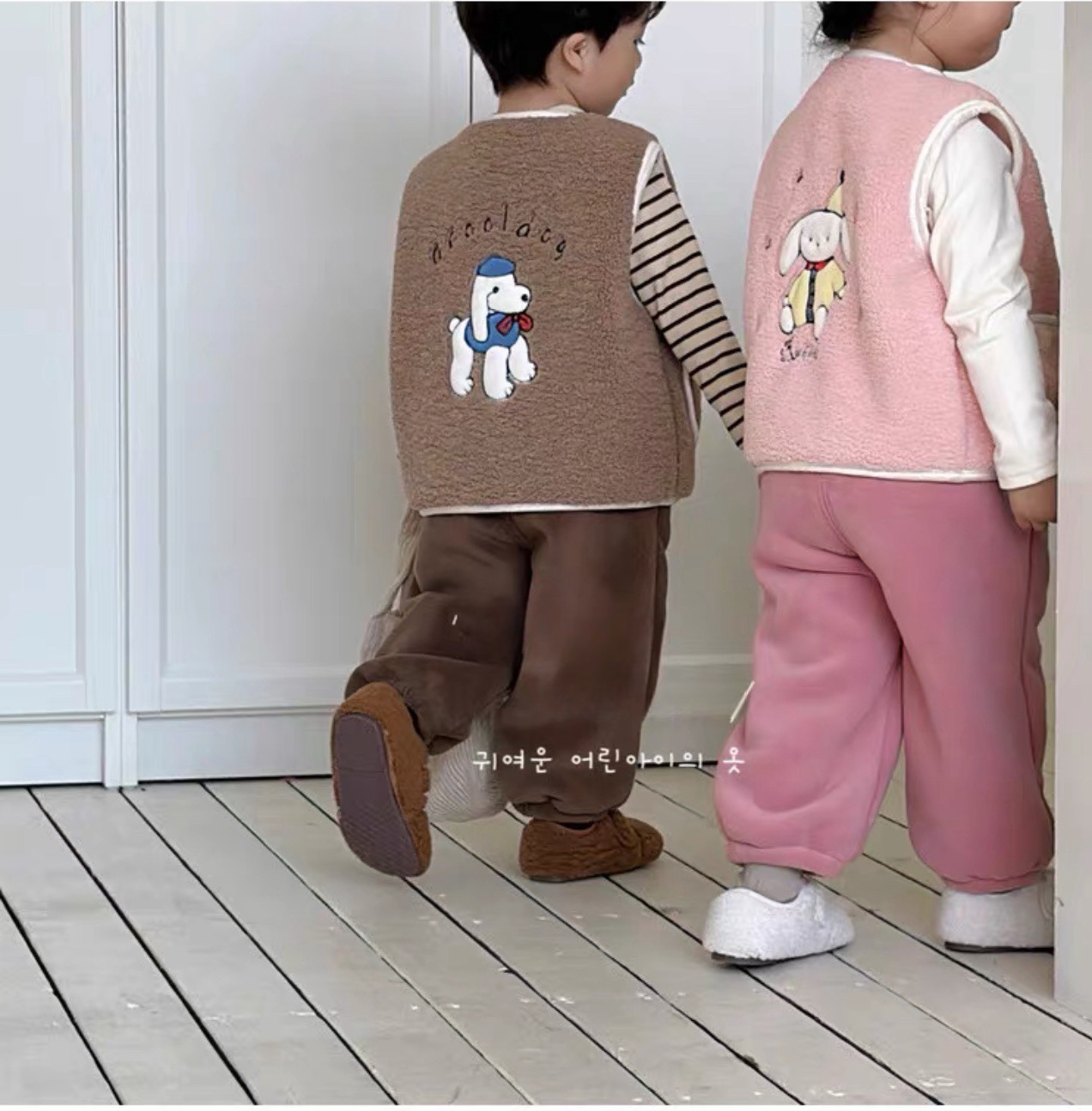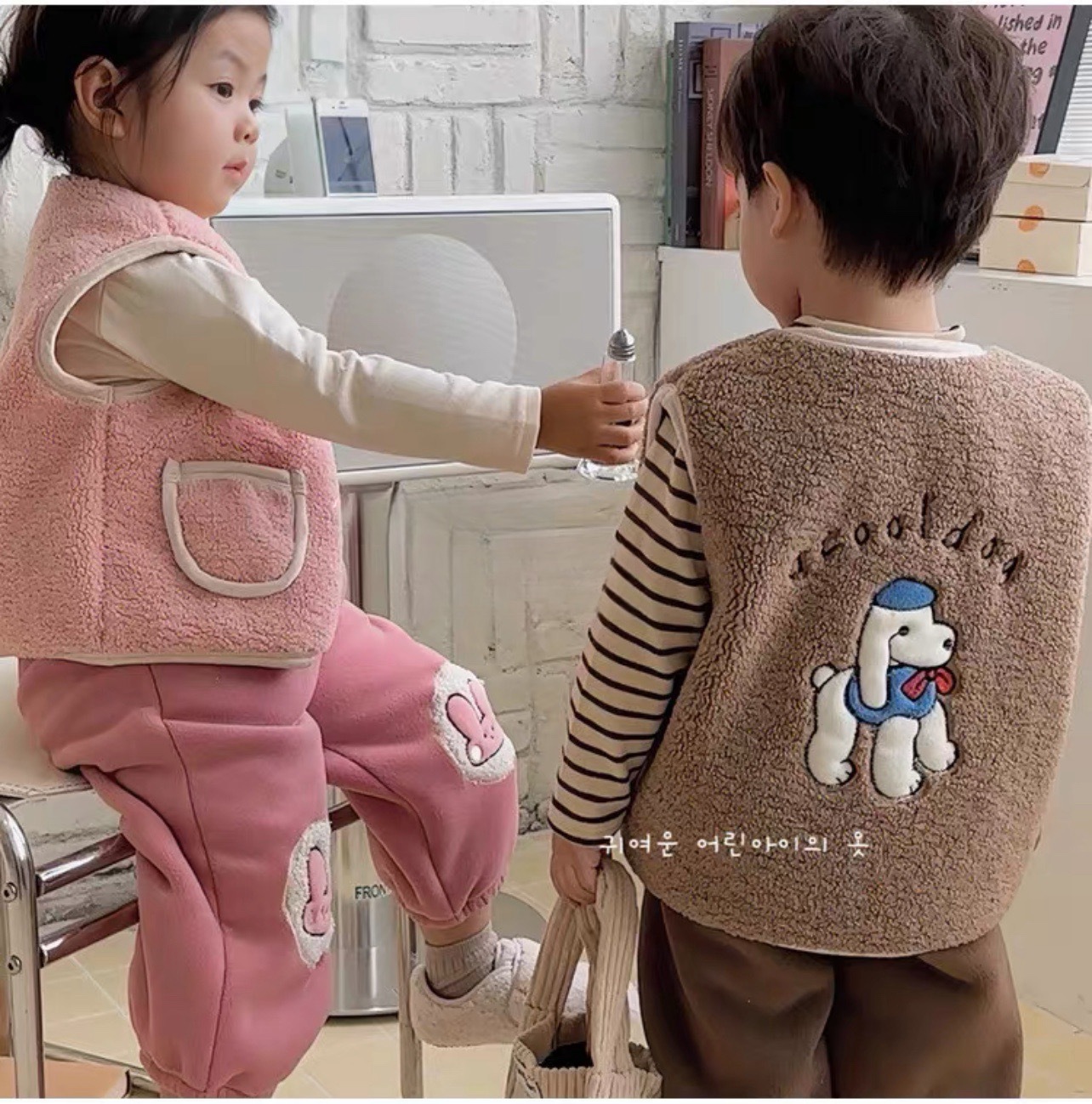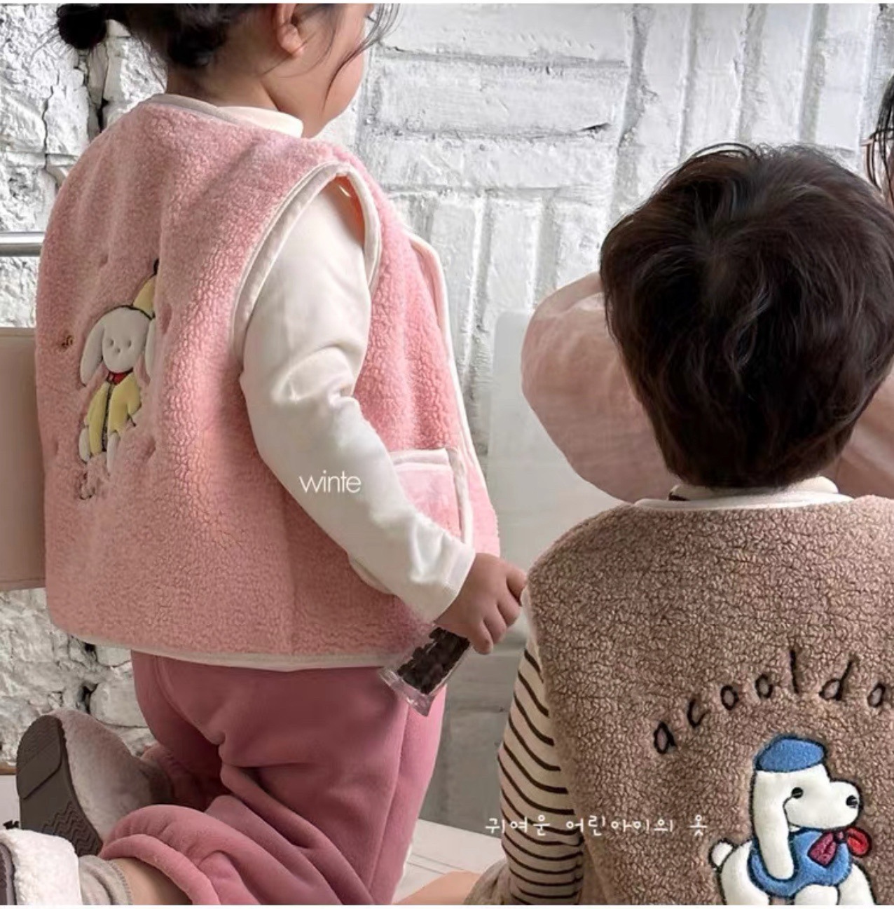 어린이 양털 만화 수 놓은 한국어 버전 귀여운 조끼 카테고리 A 소년과 소녀 겨울 코어 따뜻하고 두꺼운 1 도매스토어 가기