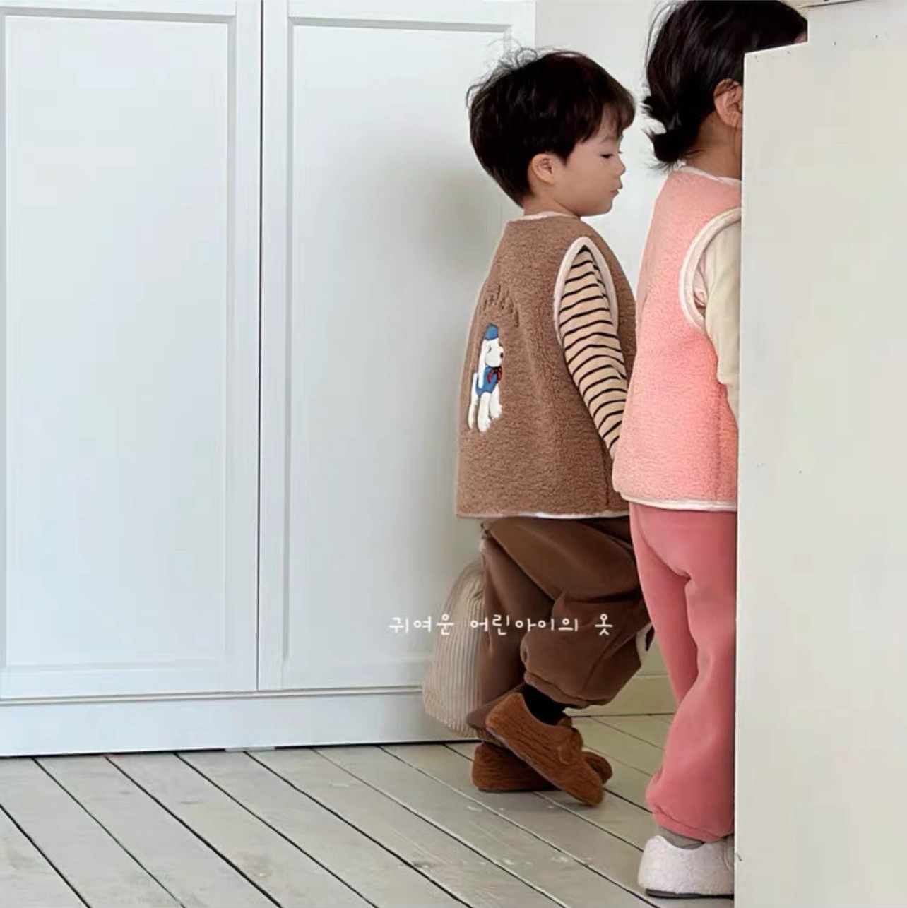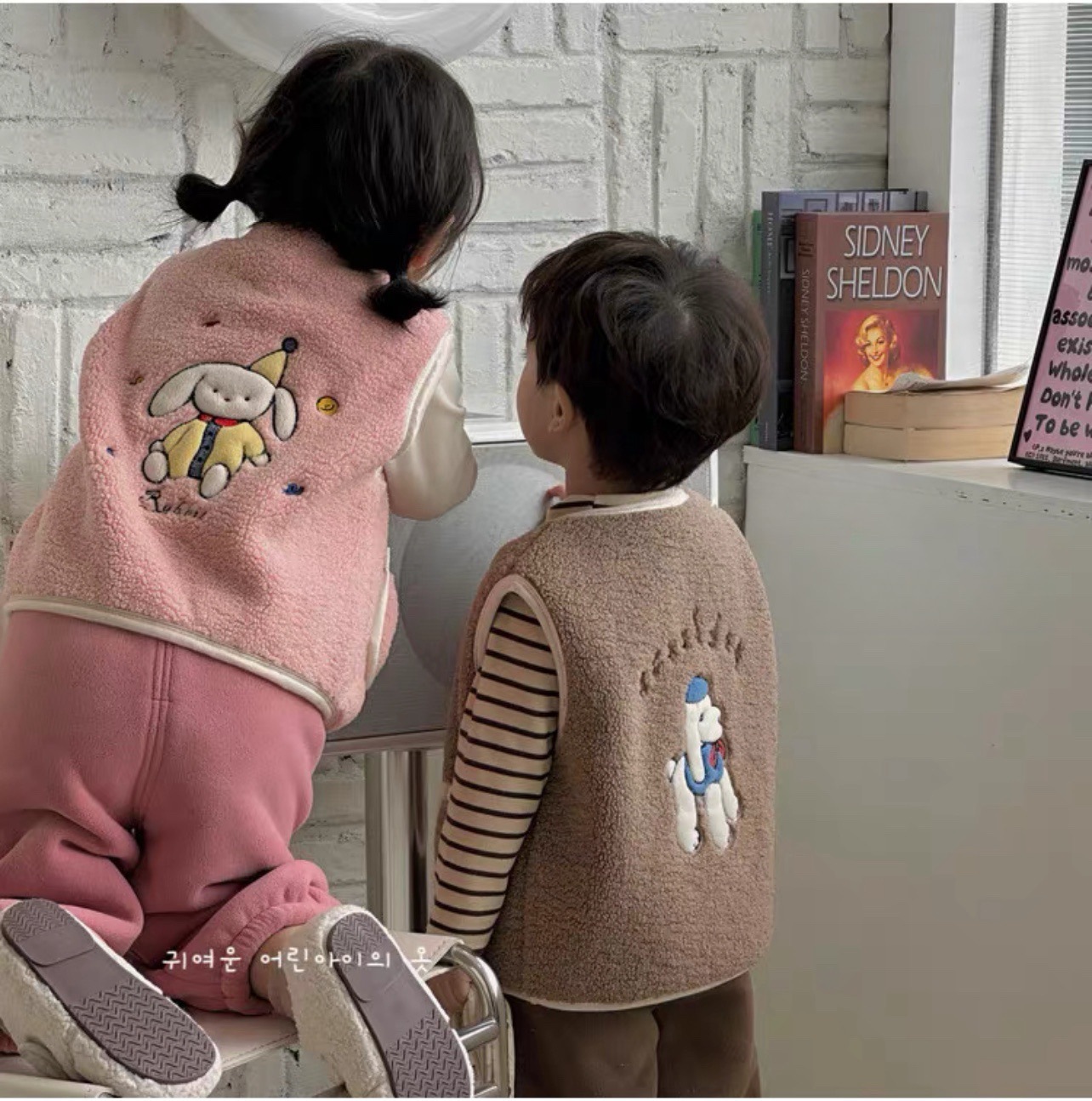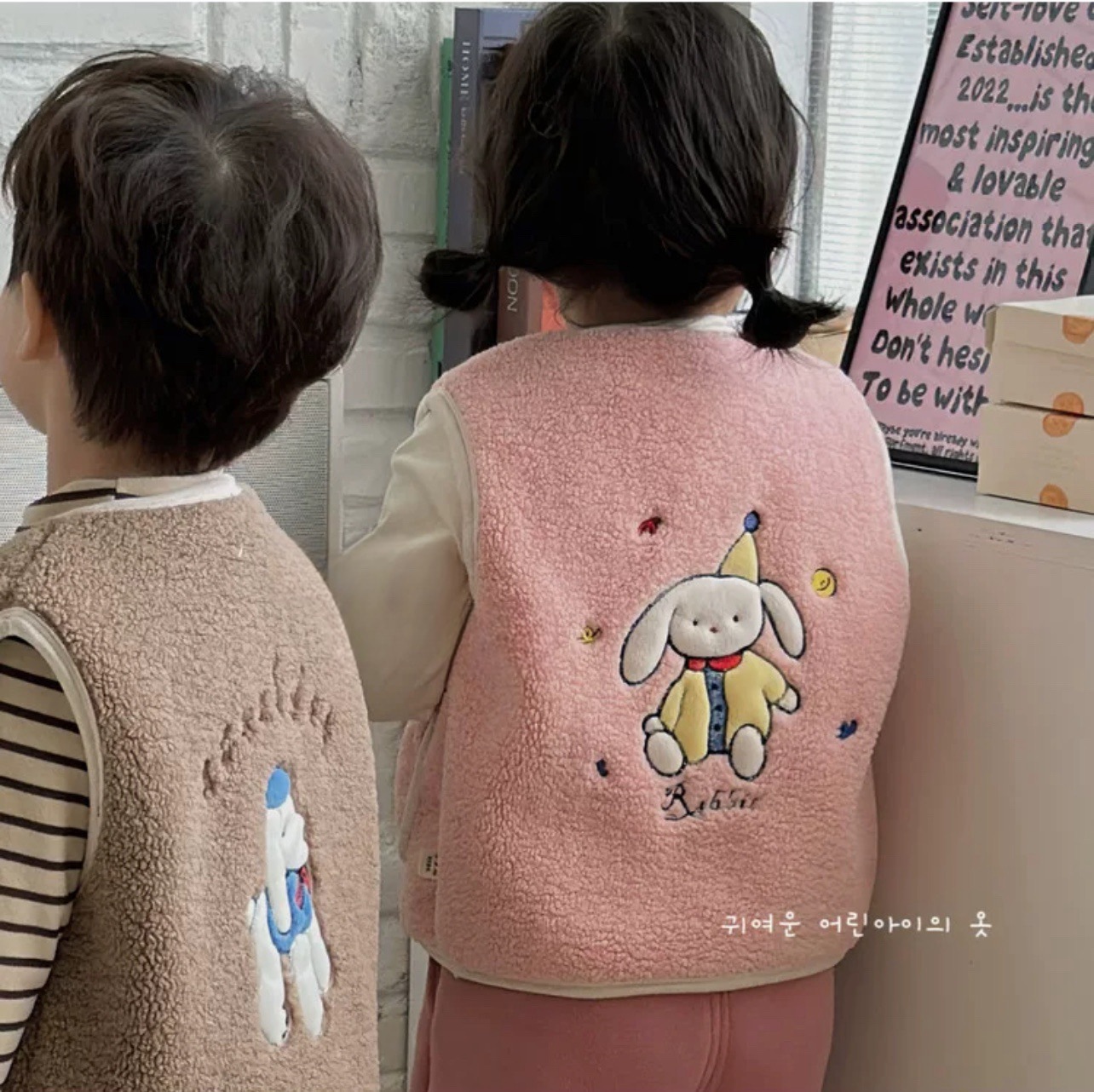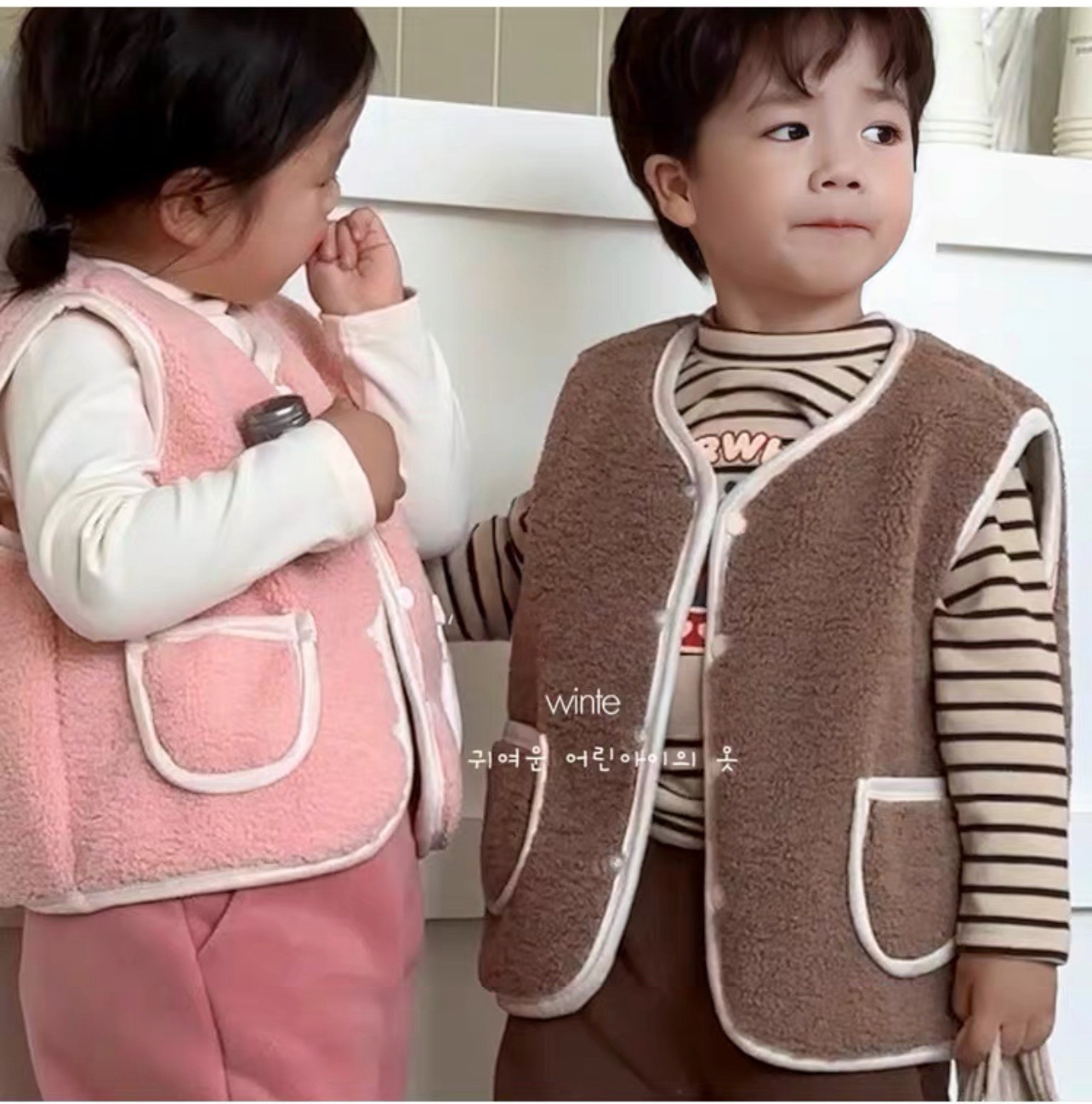 어린이 양털 만화 수 놓은 한국어 버전 귀여운 조끼 카테고리 A 소년과 소녀 겨울 코어 따뜻하고 두꺼운 1 도매스토어 가기