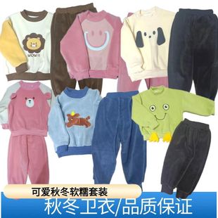 外贸韩版卡通秋冬保暖厚款摇粒绒韩版可爱潮流萌娃运动卫衣套装