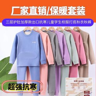 北方抗低温出口俄罗斯三层羊毛护肚A类羊绒儿童秋衣秋裤保暖套装