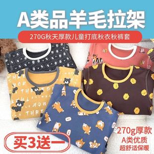 A类棉【高品质】270g羊毛拉架儿童印花打底内衣睡衣秋衣裤套装