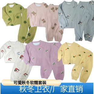 厂家直销儿童可爱加厚细腻舒适毛巾绒秋冬新款男女童家居睡衣套装