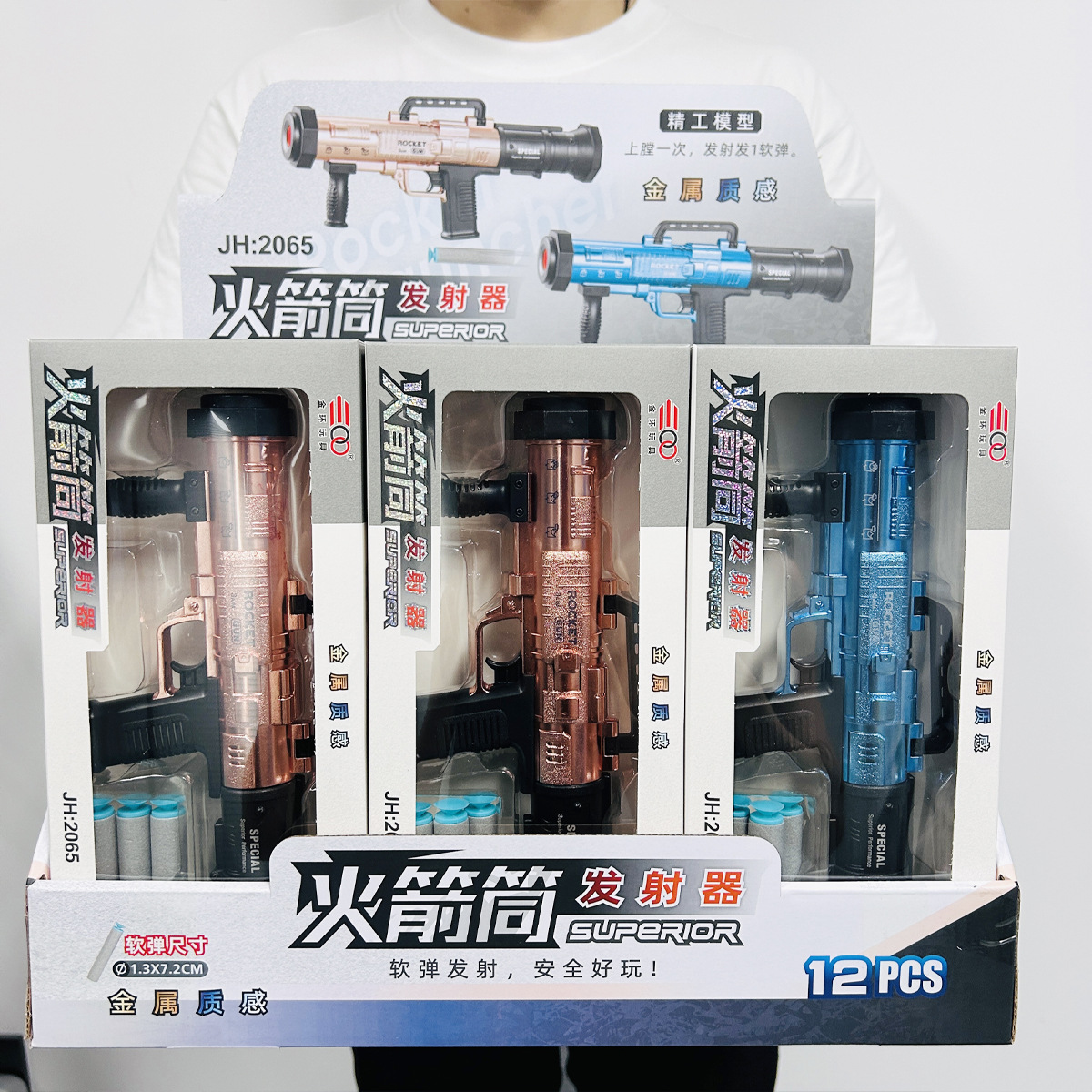 어린이 장난감 바주카 발사기 부드러운 총알 총 장미 금속 질감 장난감 총 권총 훈련 기관 도매